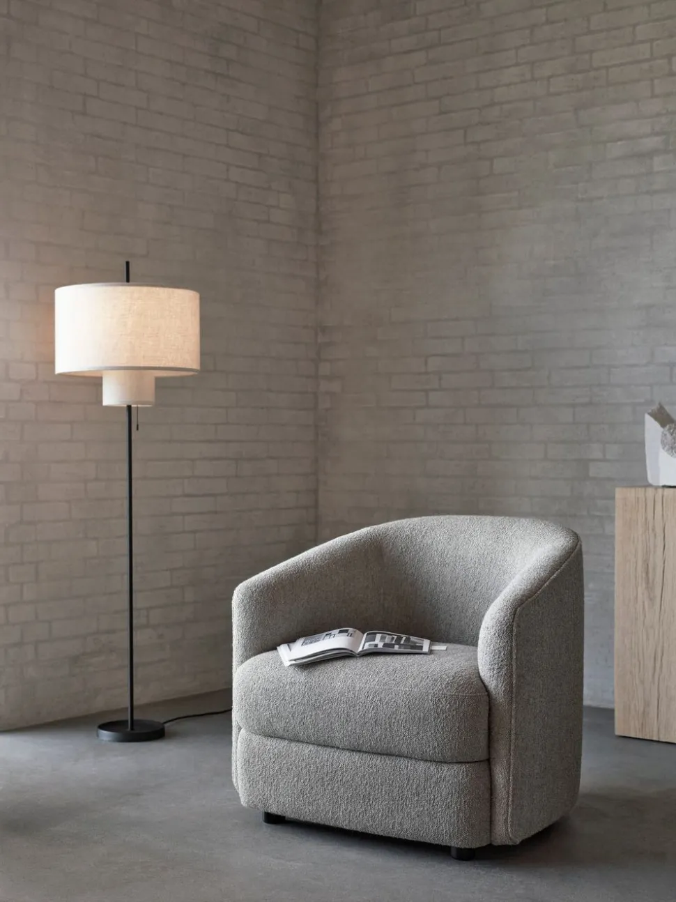 Das Design von Astbury hält ein delikates Gleichgewicht aufrecht, indem es die Weichheit des Textils einer klaren, grafischen Silhouette gegenüberstellt, die diesen Lampen Volumen und Präsenz verleiht. Das Augenmerk auf die Proportionen und das lineare Element, das die Leuchte durchzieht, verstärken die Ästhetik und lassen den einzigartigen Charakter der Margin Stehleuchte zur Entfaltung kommen.