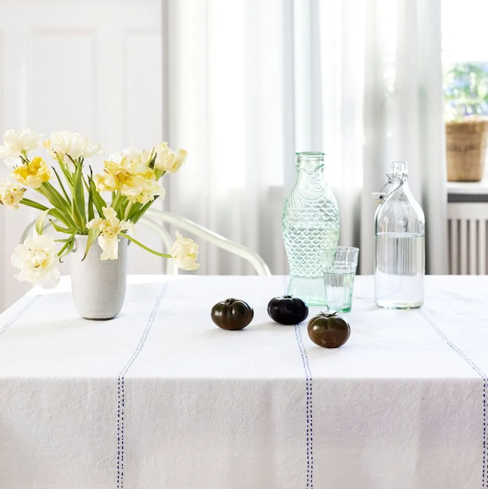 Die Tischdecke Marie mit handgestickter blauer Naht von Langkilde Flagfabrik ist eine elegante Ergänzung für jedes Esszimmer. Die schöne Tischdecke ist mit Sorgfalt und Liebe zum Detail gefertigt, die Ihrem Tisch einen Hauch von Klasse verleihen wird.