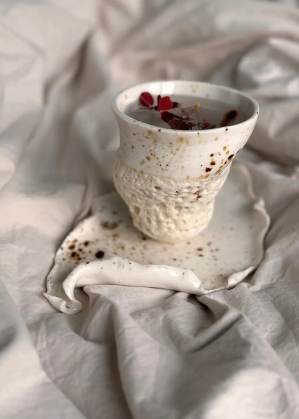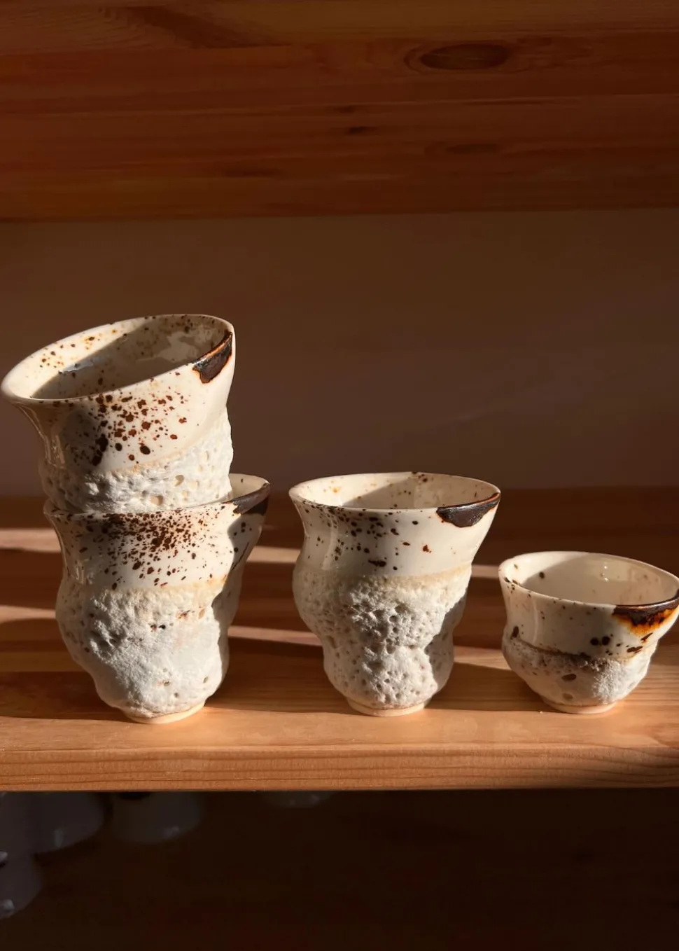 Da die Tassen in Handarbeit hergestellt werden, können geringfügige Abweichungen in Farbe und Glasur auftreten. Dies ist völlig normal und hat keinen Einfluss auf die Qualität, das allgemeine Aussehen oder den Gebrauch des Produkts. Das ist der Charme einer handgefertigten Tasse. Die Effektglasur kann aufgrund der Hohlräume und Blasen empfindlich sein. Die Glasur ist matt und kann ein wenig bröckeln, daher gibt es keine Garantie auf die Glasur. Das Lebendige und Schöne an der Tasse ist, dass sie den Hauch des Lebens spürt, so wie die Natur sich verändert.