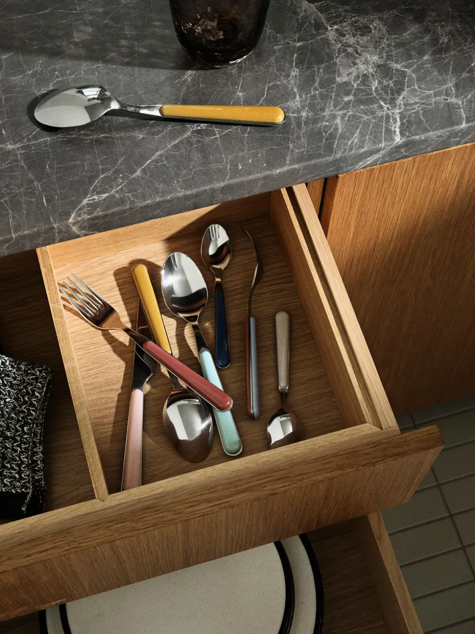 Das Besteckset Marstal von Broste Copenhagen ist eine wahre Hommage an die skandinavische Designästhetik. Jedes Teil dieses Sets verbindet Schlichtheit mit raffinierter Eleganz und spiegelt einen tiefen Respekt für Handwerkskunst und Qualität wider. Marstal ist aus langlebigem Edelstahl gefertigt und bietet eine einzigartige matte Oberfläche, die jedem Esstisch eine moderne Note verleiht. Die schlanken, stromlinienförmigen Griffe und die ausgewogenen Proportionen sorgen für ein angenehmes Gewicht und ein gutes Gefühl in der Hand, so dass jede Mahlzeit zum Vergnügen wird.