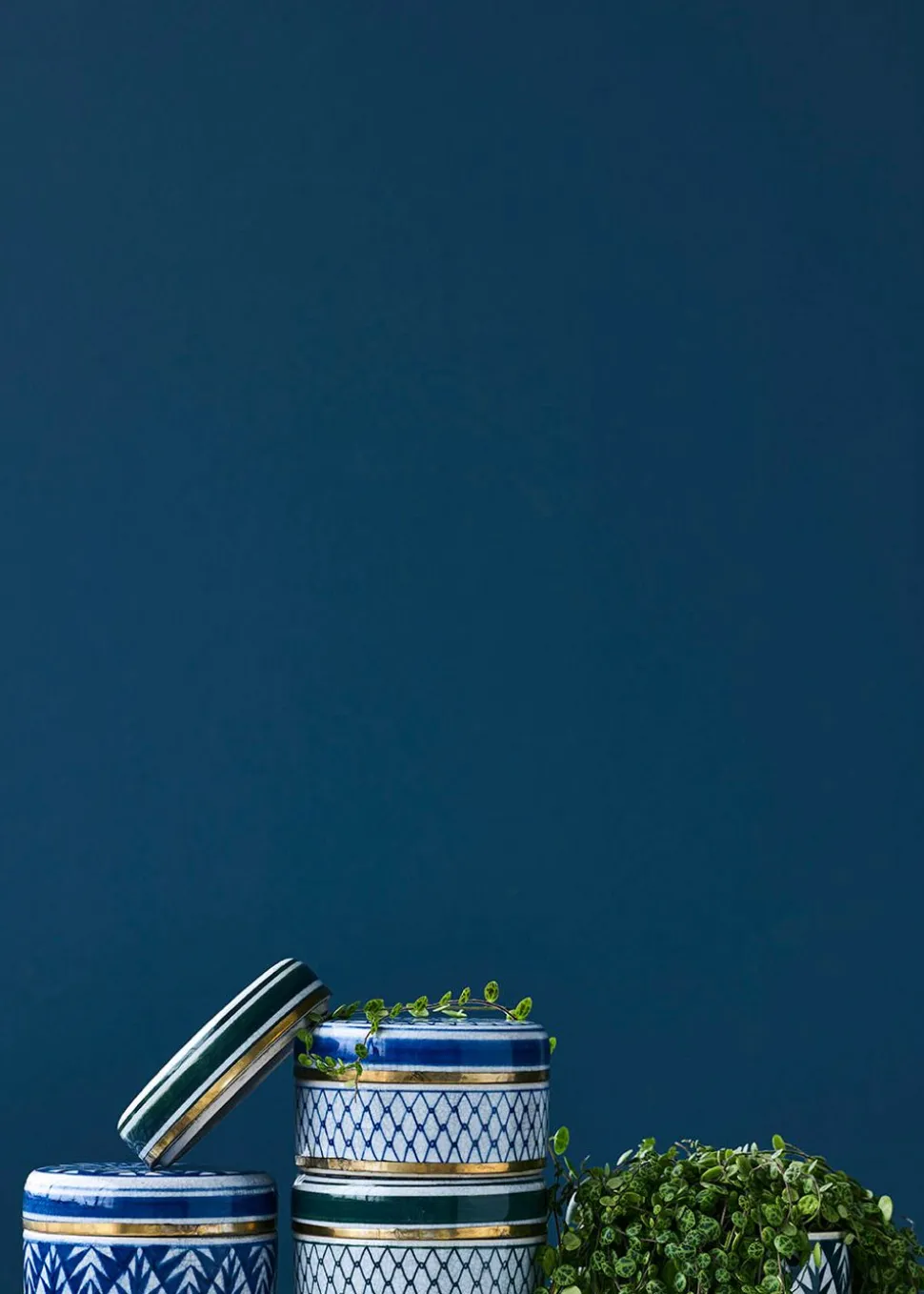 Die schönen Matee-Dosen von sind eine Verschmelzung von östlicher Handwerkskunst und skandinavischem Minimalismus. Die Kannen werden in einer Familienmanufaktur in Bangkok handgefertigt und bemalt, was jeder Vase ihren eigenen, einzigartigen Ausdruck verleiht.