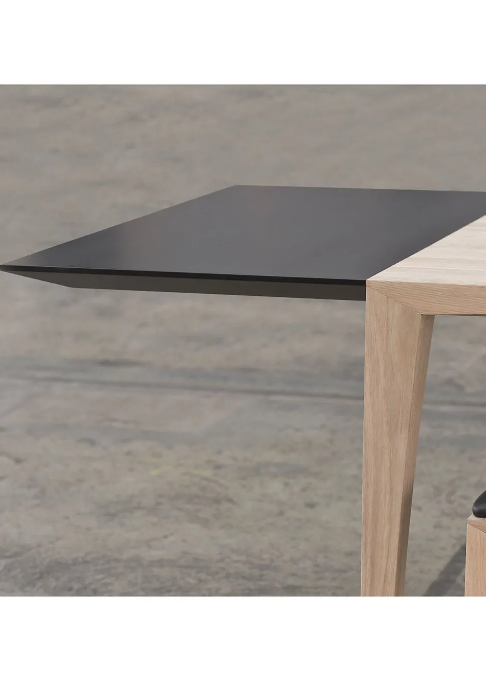 MATZ wurde von Mads K. Johansen entworfen. Die Idee zu MATZ entstand auf einer Zugfahrt unter dem Vejlefjordbro, wo er sich von den gebogenen Brückenelementen inspirieren ließ. Die gebogene Fräsung auf der Tischplatte verleiht dem Dickblech einen leichten Ausdruck. Der Tisch ist stabil, da die Eckanordnung mit einer speziellen Halterung montiert wird. MATZ ist in verschiedenen Größen und Hölzern erhältlich. Die MATZ-Serie besteht aus einer Bank, einem Esstisch und einem Couchtisch. Mehrpreis für Zusatzteller, Klarlack oder Extrakt in der Mitte.