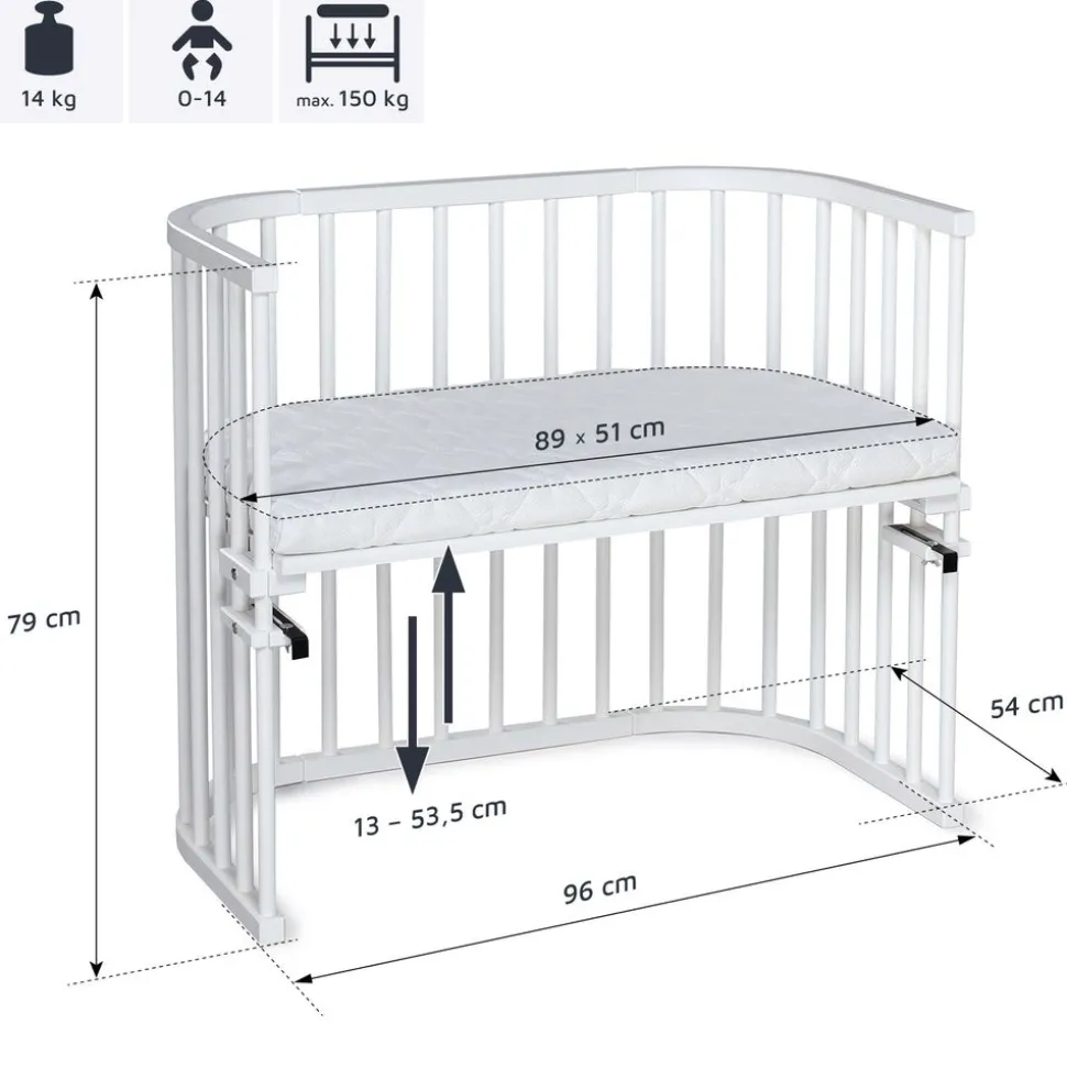 - Empfohlene Höhe des Elternbettes: 13-53,5 cm