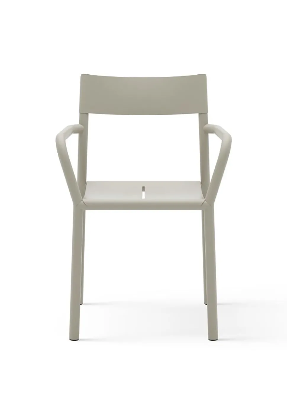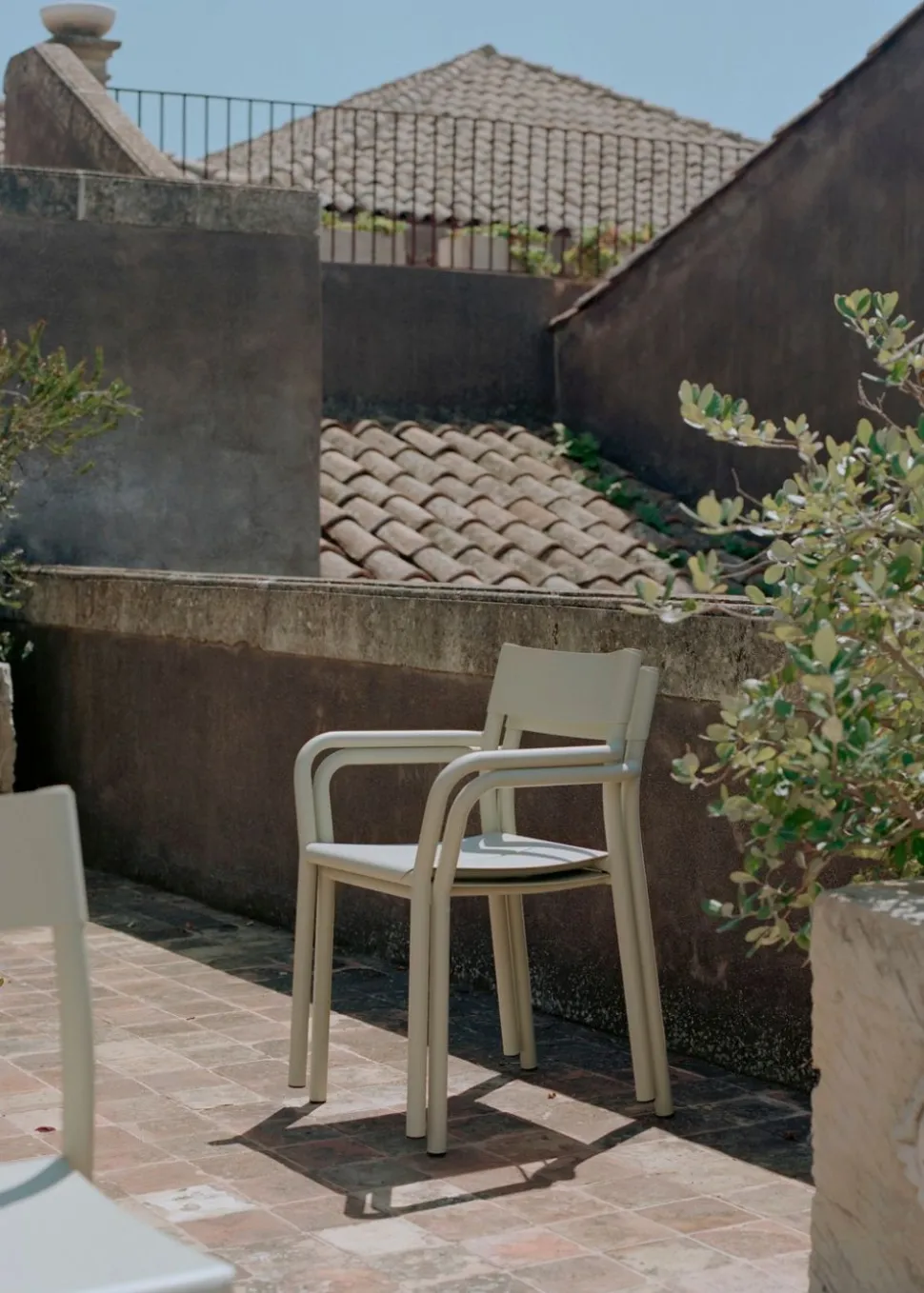 Auf den ersten Blick fällt die schlichte und luftige Erscheinung des May Armchair ins Auge. Die geschwungene Rückenlehne und die eleganten Armlehnen verleihen dem Sessel eine einladende Dimension, während die skulpturalen Beine das minimalistische Design vervollständigen. Der May Armchair ist eine hervorragende Ergänzung für jede Terrasse und verleiht ihr einen Hauch von raffinierter Ästhetik und Eleganz.