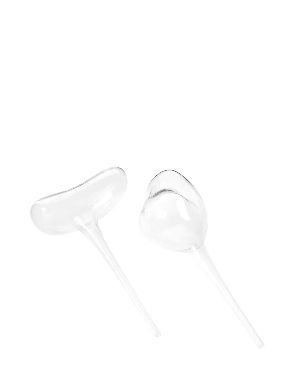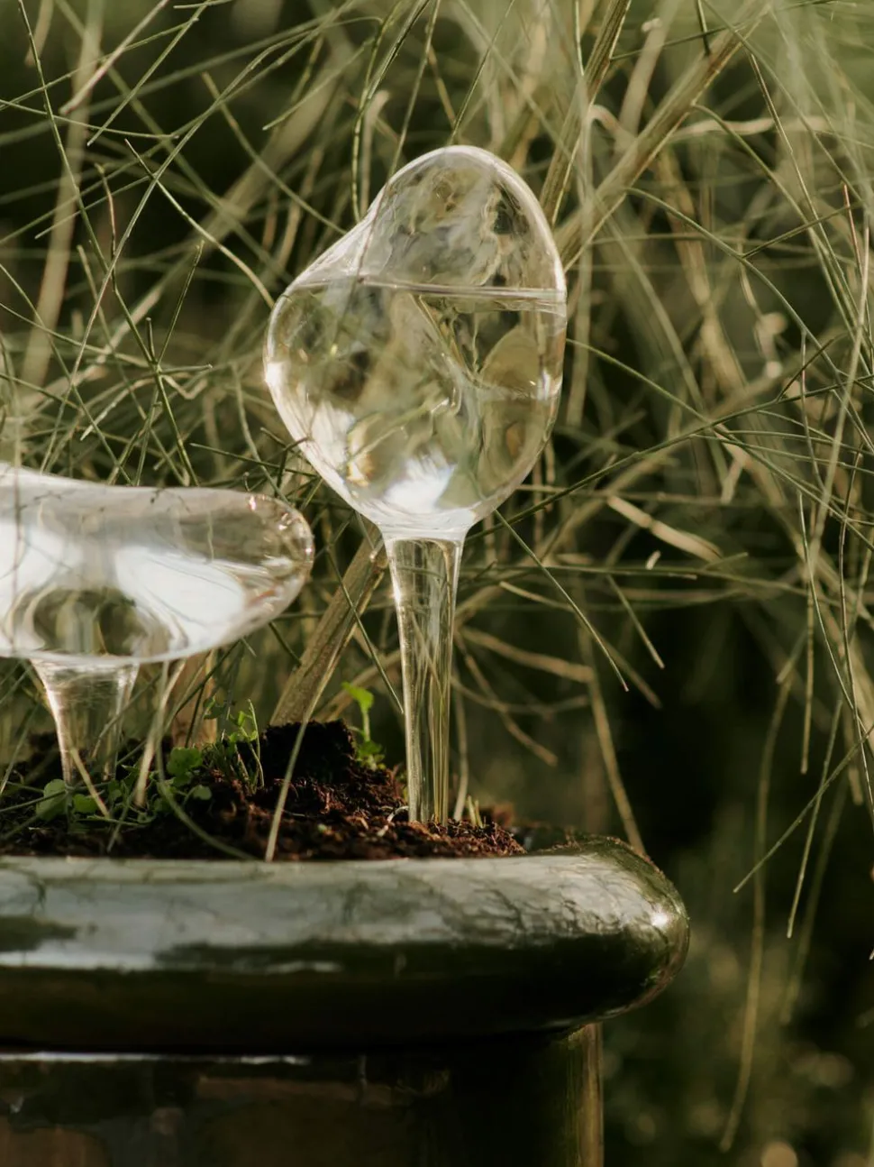 Die Mercury Water Globes von vereinen Funktion und Ästhetik in einer einfachen, aber raffinierten Lösung für die Pflanzenpflege. Die beiden mundgeblasenen Wasserkugeln bestehen vollständig aus Glas und haben eine organische Form, die jeder Topfpflanze einen eleganten Touch verleiht. Mit ihrem selbstregulierenden Bewässerungssystem sorgen sie dafür, dass die Erde optimal feucht bleibt, während das zarte Design sie zu einem dekorativen Detail in der Wohnung macht.