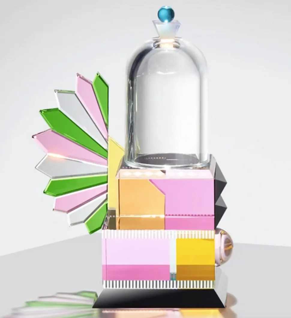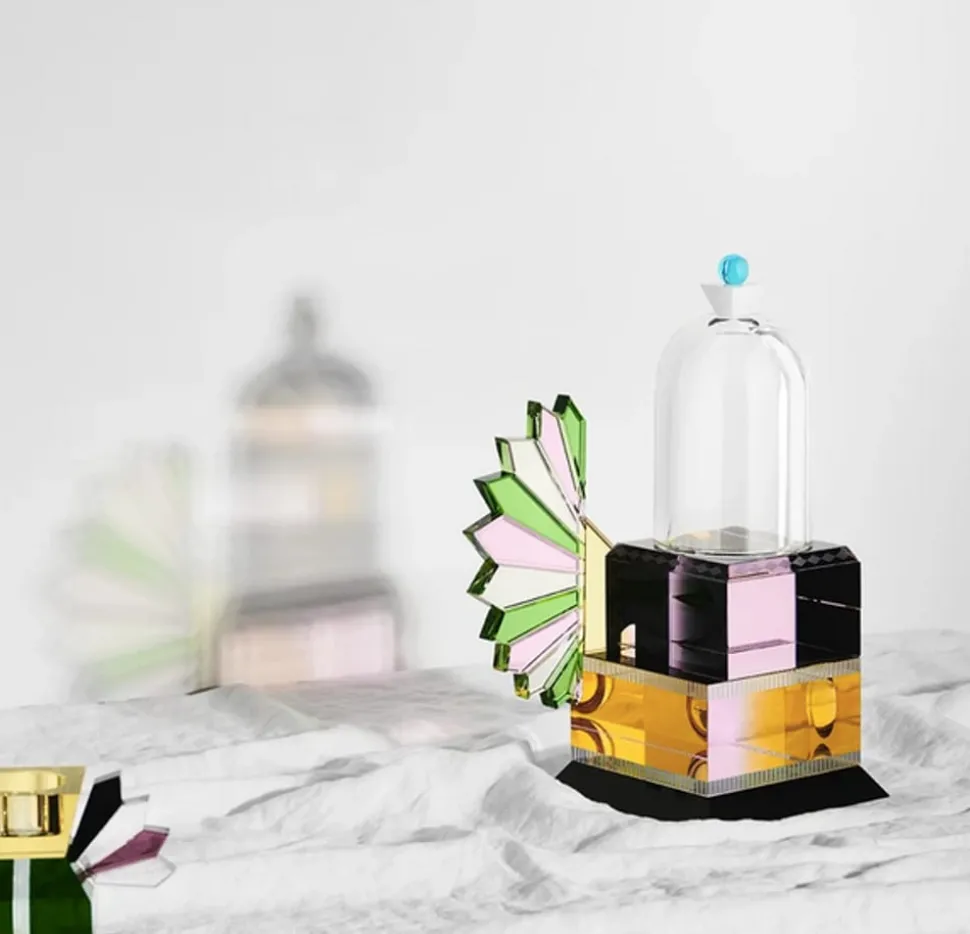 Die Meridian Glasglocke ist ein einzigartiges Kunstwerk mit viel Farbspiel. Seine geometrischen Formen und Figuren vervollständigen Ihr Zuhause.