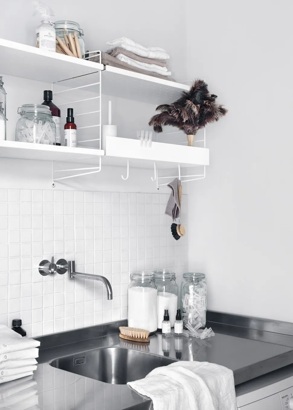 Metal Shelf ist Teil des String-Regalsystems, bei dem Funktionalität und individuelle Gestaltung im Vordergrund stehen. Das Regalsystem bietet unendliche Möglichkeiten für die Aufbewahrung und Kreativität. Mit einer großen Auswahl an Varianten, Farben und Materialien ist das String-Regalsystem der perfekte Weg, um Ihr eigenes Design zu gestalten. Die Serie besteht aus Boden-, Wand- und Flex-Paneelen, die eine Basis für Regale und Ablagen bilden. Es können Regale, Schränke, Bordüren, Zeitschriftenhalter und verschiedene Gadgets hinzugefügt werden. Das flexible System eignet sich perfekt für das moderne Zuhause, in dem einige wenige Elemente die Grundlage für die Inneneinrichtung des gesamten Hauses bilden können und sich leicht an den jeweiligen Raum anpassen lassen, egal für welchen Zweck.