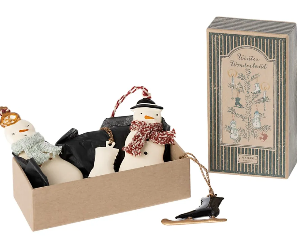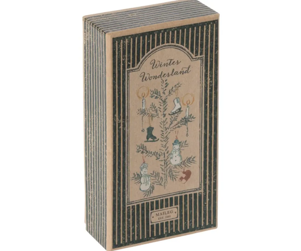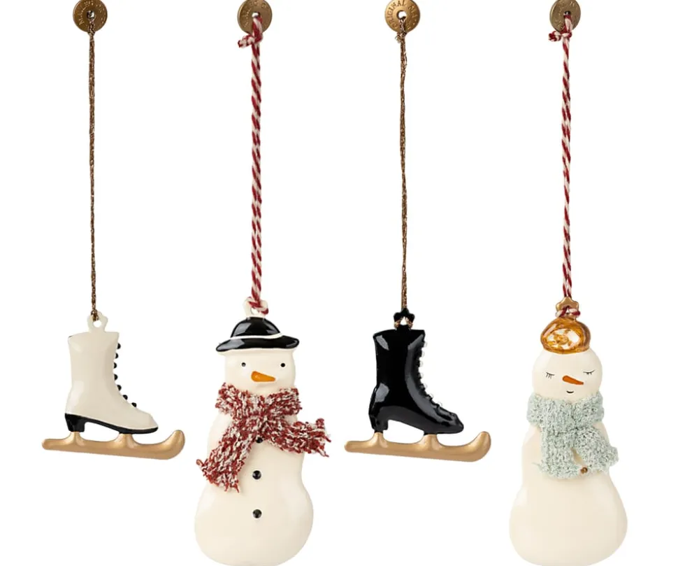 Das perfekte Weihnachtsgeschenk finden Sie hier mit dem Metall-Hängeset von . Das Set enthält 4 wunderschöne Maileg-Ornamente, die jeweils in Seidenpapier eingewickelt sind. Die Ornamente werden in einer schön dekorierten Geschenkbox mit Zeichnungen von Dorthe Mailil geliefert.