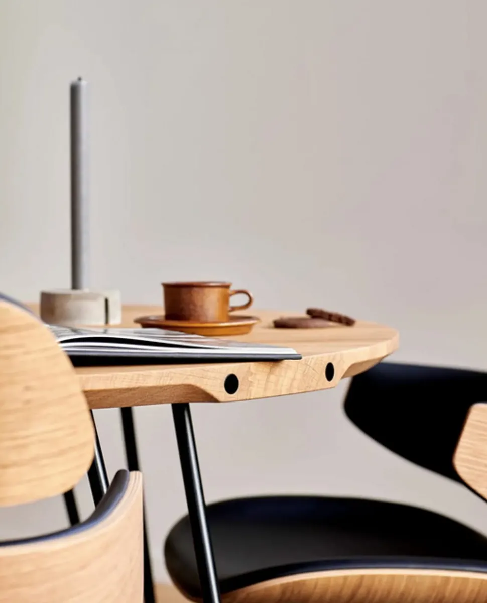 Der Midas-Stuhl GM 576 von Never Collection, entworfen von Susanne Grønlund, ist eine beeindruckende Verkörperung dänischer und internationaler Designtraditionen. Der aus Formholz in Esche, Eiche oder Nussbaum gefertigte Stuhl zeichnet sich durch weiche Kurven aus, die außergewöhnlichen Komfort und Halt bieten. Das Zusammenspiel der geformten Holzelemente erzeugt einen dynamischen visuellen Fluss mit Kurven, die elegant auseinander- und zusammenlaufen. Das schlichte, schwarz pulverbeschichtete Gestell verleiht dem Stuhl einen Hauch von moderner Leichtigkeit und passt damit ideal in zeitgenössische Wohnungen.