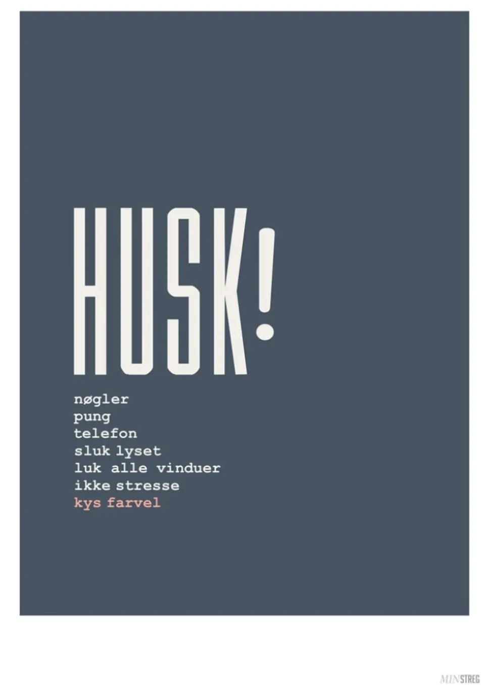 MinStreg sind Illustrationen und Poster, die von Heidi Alminde entwickelt und gestaltet wurden. Der Stil ist grafisch und anders, und die originellen Zeichnungen sprechen alle Geschmäcker an.