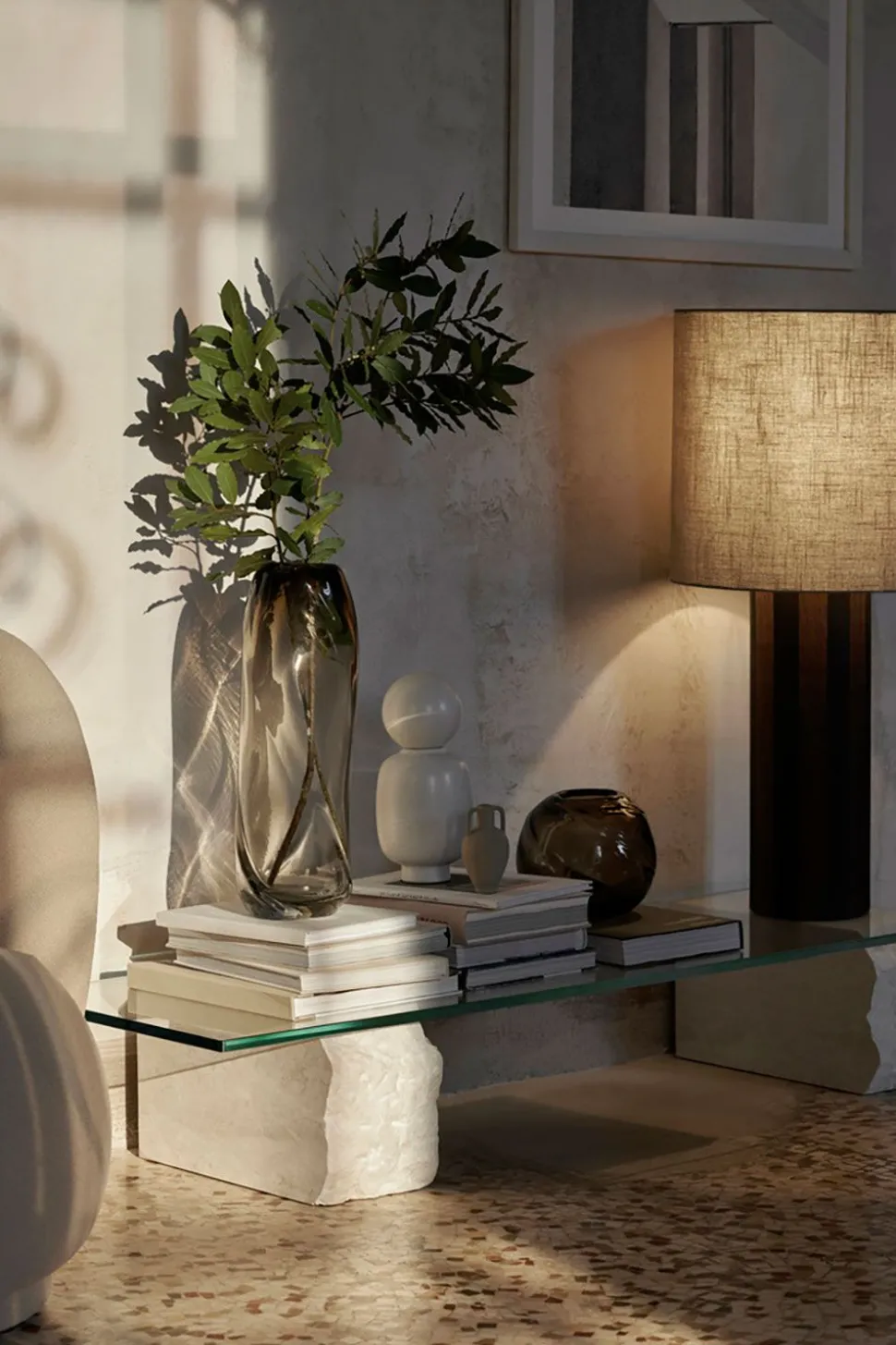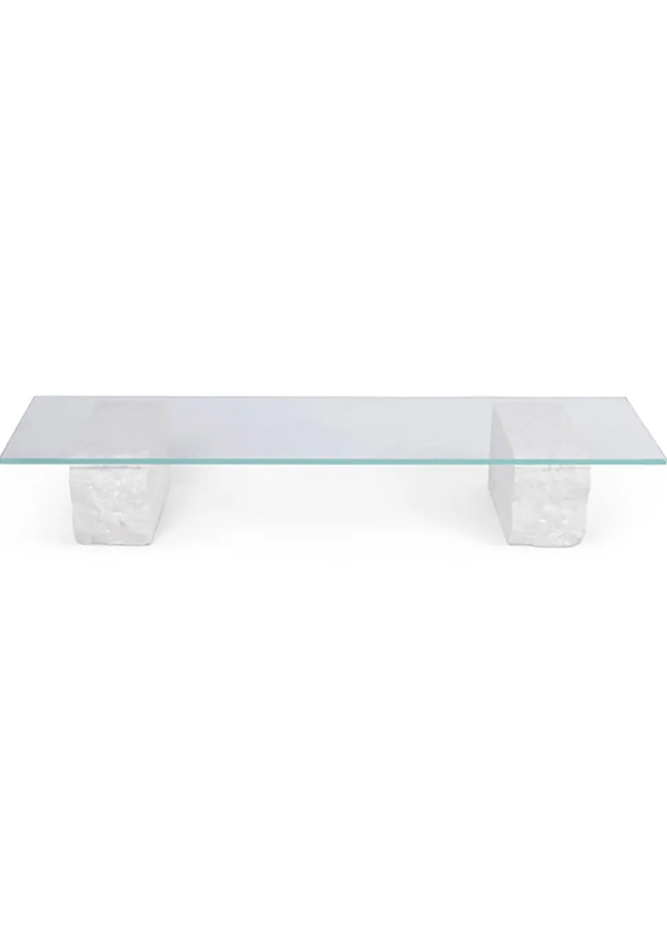 Mit seinem klaren und minimalistischen Design verleiht der Mineral Display Table von jeder Einrichtung einen raffinierten Touch. Der handgefertigte Marmor in Curia sorgt für einen schönen und einzigartigen Look, der Ihre Gäste aufhorchen lassen wird. Die Tischplatte ist aus Glas und die rauen Kanten sind mit einem Marmormeißel handgefertigt.
