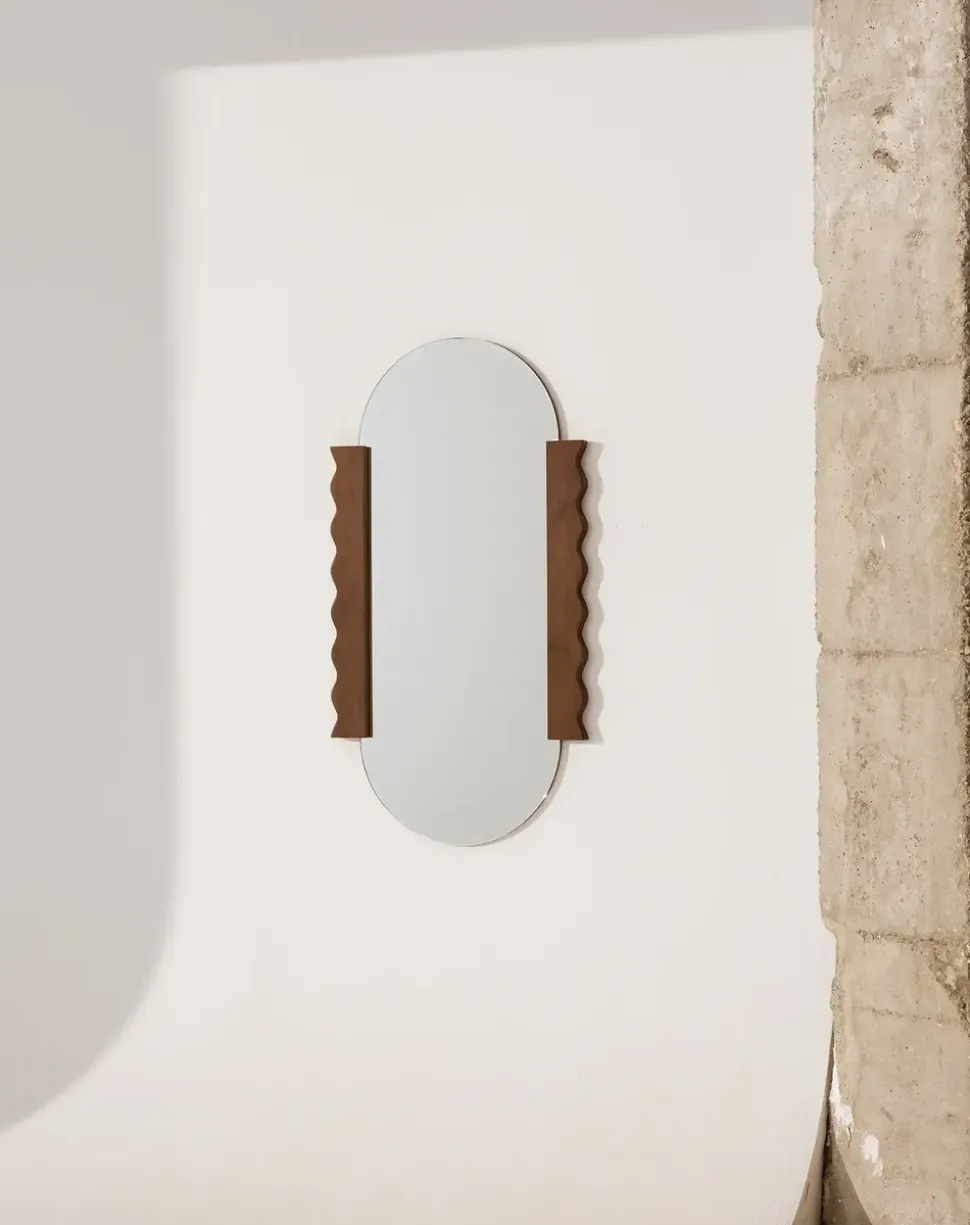 Der Mirror Heju X Spiegel von und dem Designstudio Heju verbindet Funktionalität und Ästhetik in perfekter Balance. Mit seinem minimalistischen Design und den weichen geometrischen Formen verleiht der Spiegel jedem Raum einen verspielten Ausdruck. Hergestellt aus verantwortlichen Materialien und sorgfältig verarbeitet, um Langlebigkeit zu gewährleisten, ist der Spiegel sowohl schön als auch praktisch. Der elegante Rahmen verleiht ihm eine warme und einladende Ausstrahlung, so dass er sich sowohl für moderne als auch für klassische Interieurs eignet.