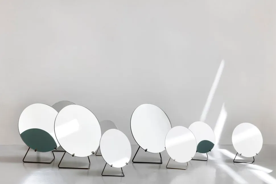 Standing Mirror wird von Moebe hergestellt. Der Spiegel wird durch ein einzelnes Spiegelglas geformt. Der Rahmen für den Spiegel ist in 2 Farben erhältlich und ist aus Metall gefertigt. Standing Mirror kann auf Ihrem Tisch, Schrank oder Regal platziert werden.