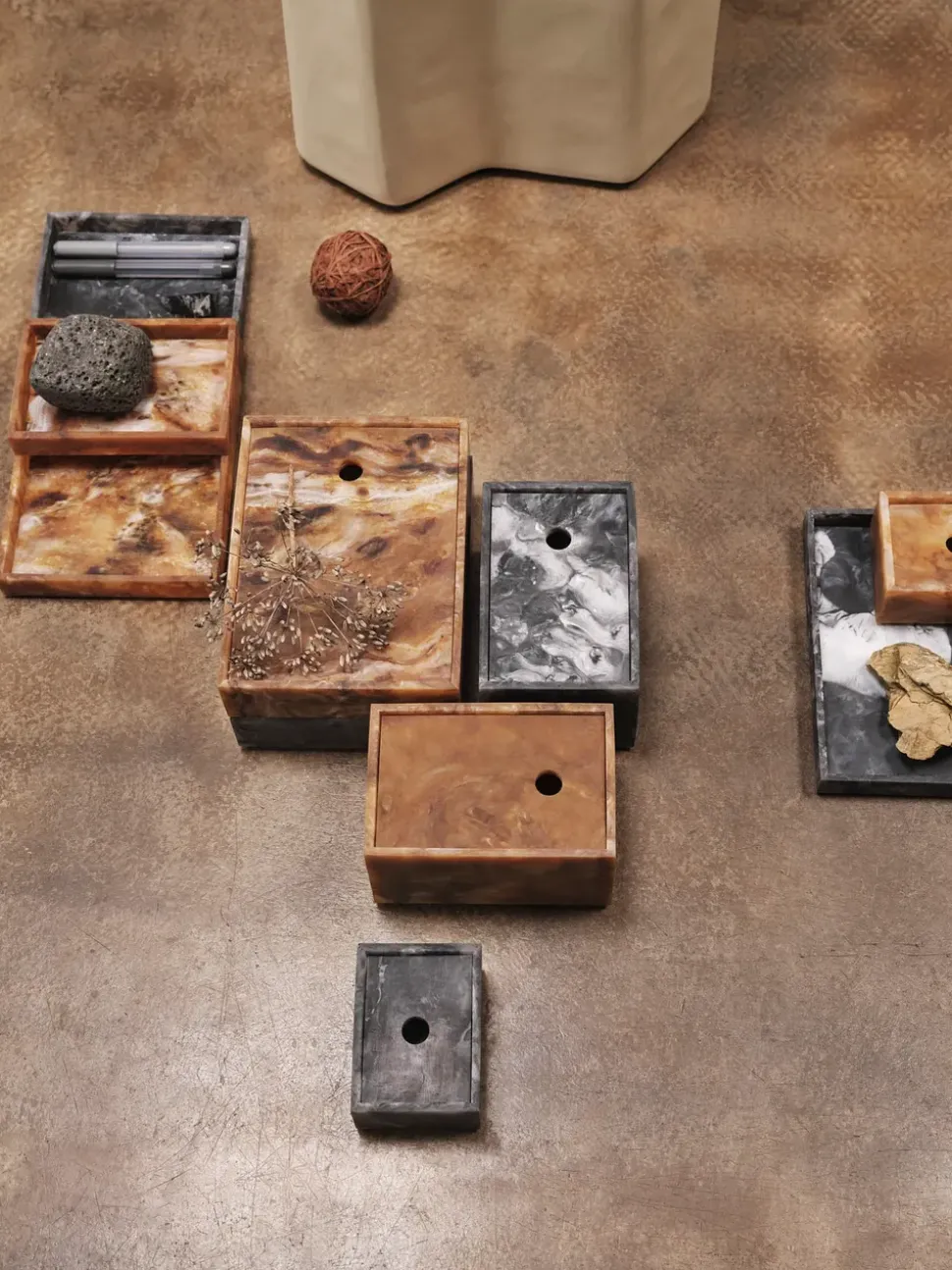 Es eignet sich perfekt als dekorative Unterlage auf dem Couchtisch oder der Konsole, wo es alles von Kerzen bis zu kleinen Skulpturen aufnehmen kann. Das Mist Tray verleiht eine schlichte Eleganz und kann leicht mit minimalistischen oder rustikaleren Elementen kombiniert werden, um ein harmonisches Gesamtbild in Ihrer Einrichtung zu schaffen.