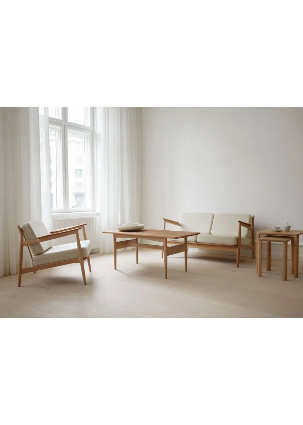 Das 2-Sitzer-Sofa Modell 107 von ist ein elegantes und modernes Sofa, das jedem Zuhause einen Hauch von Stil verleihen wird. Ib Kofod-Larsen entwarf das Modell 107 in den 1950er Jahren und 1956 wurde es von produziert. Mit seiner schlanken Silhouette und den klaren Linien eignet sich das Sofa sowohl für moderne als auch für klassische Einrichtungen. Das Sofa ist aus den besten Materialien gefertigt und hat einen massiven Holzrahmen, der für lange Haltbarkeit und Komfort sorgt.