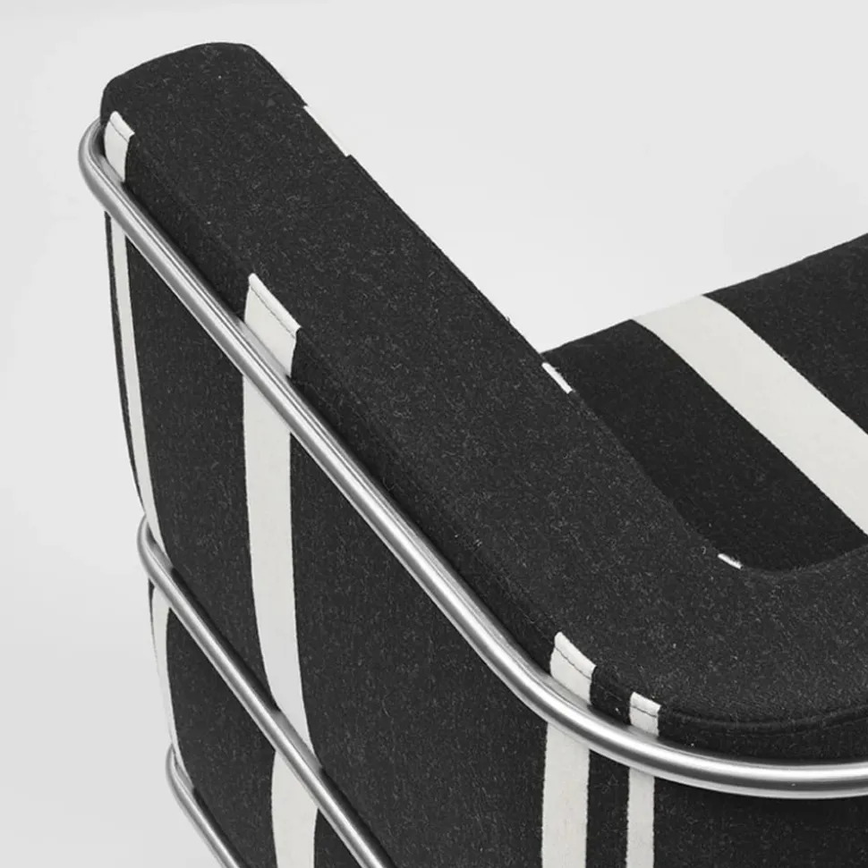 Der modernistische Loungesessel ist aus Wolle gefertigt und bietet dadurch einen hohen Sitzkomfort. Der Stahl des Stuhls ist rostfrei. Sie können den Stuhl mit anderen Elementen der Moderne, wie dem Sofa, kombinieren.