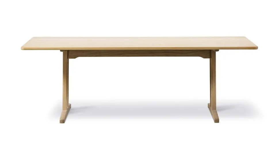 Børge Mogensens Esstisch „C18“, der erstmals 1947 entworfen wurde, gehörte zu Mogensens wachsendem Portfolio einzigartiger und funktionaler Tische, die im Laufe der Zeit sowohl national als auch international zu zeitlosen Klassikern wurden. Mogensens Tische waren alle stark von seiner Designphilosophie der Funktionalität der Möbel, der Transparenz der Konstruktion und der exquisiten Qualität guter Materialien geprägt. Die Tische wurden auch vom „Form-follow-function“-Prinzip der Shaker-Bewegung und deren innovativen Tischlermethoden beeinflusst. Sowohl Børge Mogensen selbst als auch sein Kollege gehörten zu den dänischen Designern, die dazu beitrugen, die Kluft zwischen dem Shaker-Design und dem skandinavischen Minimalismus zu überbrücken, weshalb Mogensens Tisch auch als „Shaker-Tisch“ bekannt ist.