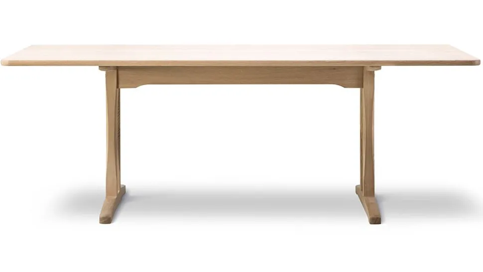 Børge Mogensens Esstisch „C18“, der erstmals 1947 entworfen wurde, gehörte zu Mogensens wachsendem Portfolio einzigartiger und funktionaler Tische, die im Laufe der Zeit sowohl national als auch international zu zeitlosen Klassikern wurden. Mogensens Tische waren alle stark von seiner Designphilosophie der Funktionalität der Möbel, der Transparenz der Konstruktion und der exquisiten Qualität guter Materialien geprägt. Die Tische wurden auch durch das „Form-follow-function“-Prinzip der Shaker-Bewegung und deren innovative Tischlermethoden beeinflusst. Sowohl Børge Mogensen selbst als auch sein Kollege gehörten zu den dänischen Designern, die dazu beitrugen, die Kluft zwischen dem Shaker-Design und dem skandinavischen Minimalismus zu überbrücken, weshalb Mogensens Tisch auch als „Shaker-Tisch“ bekannt ist.