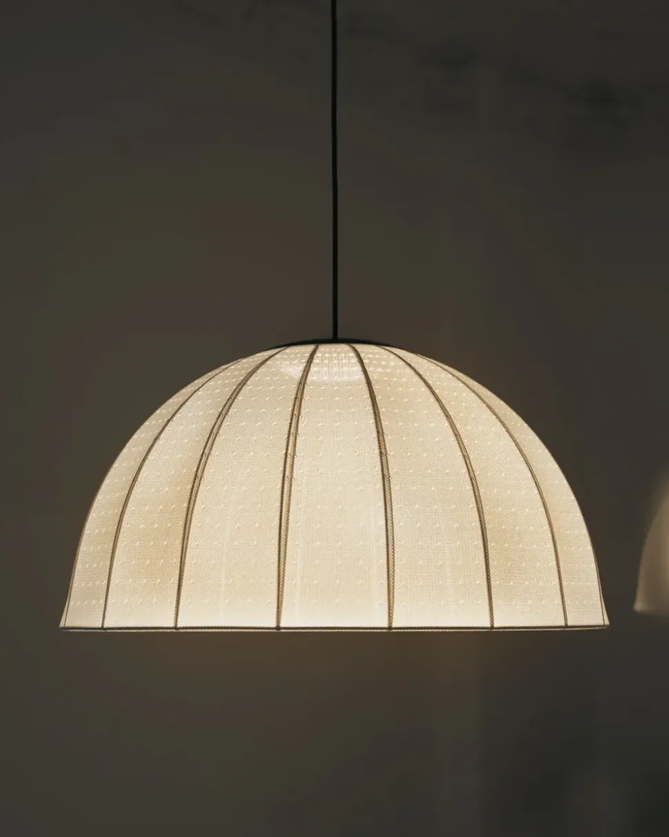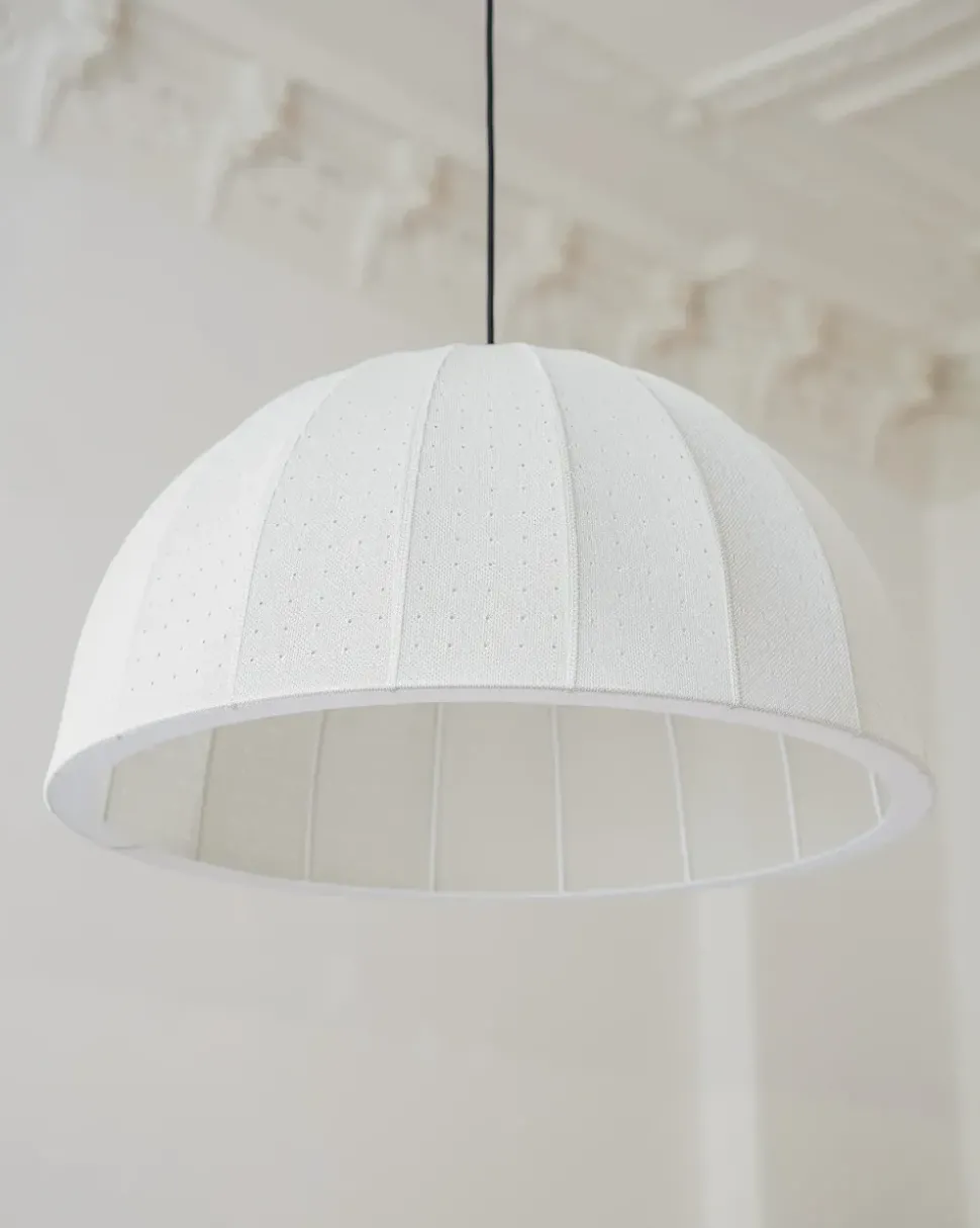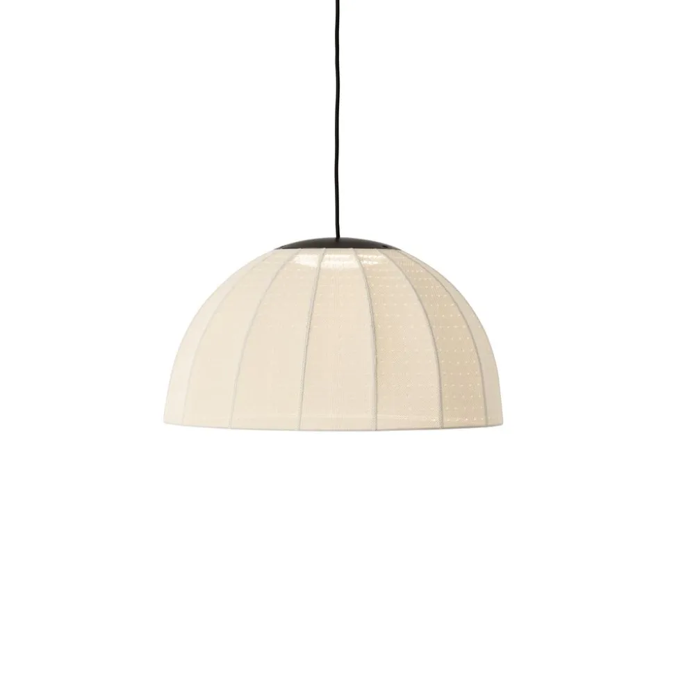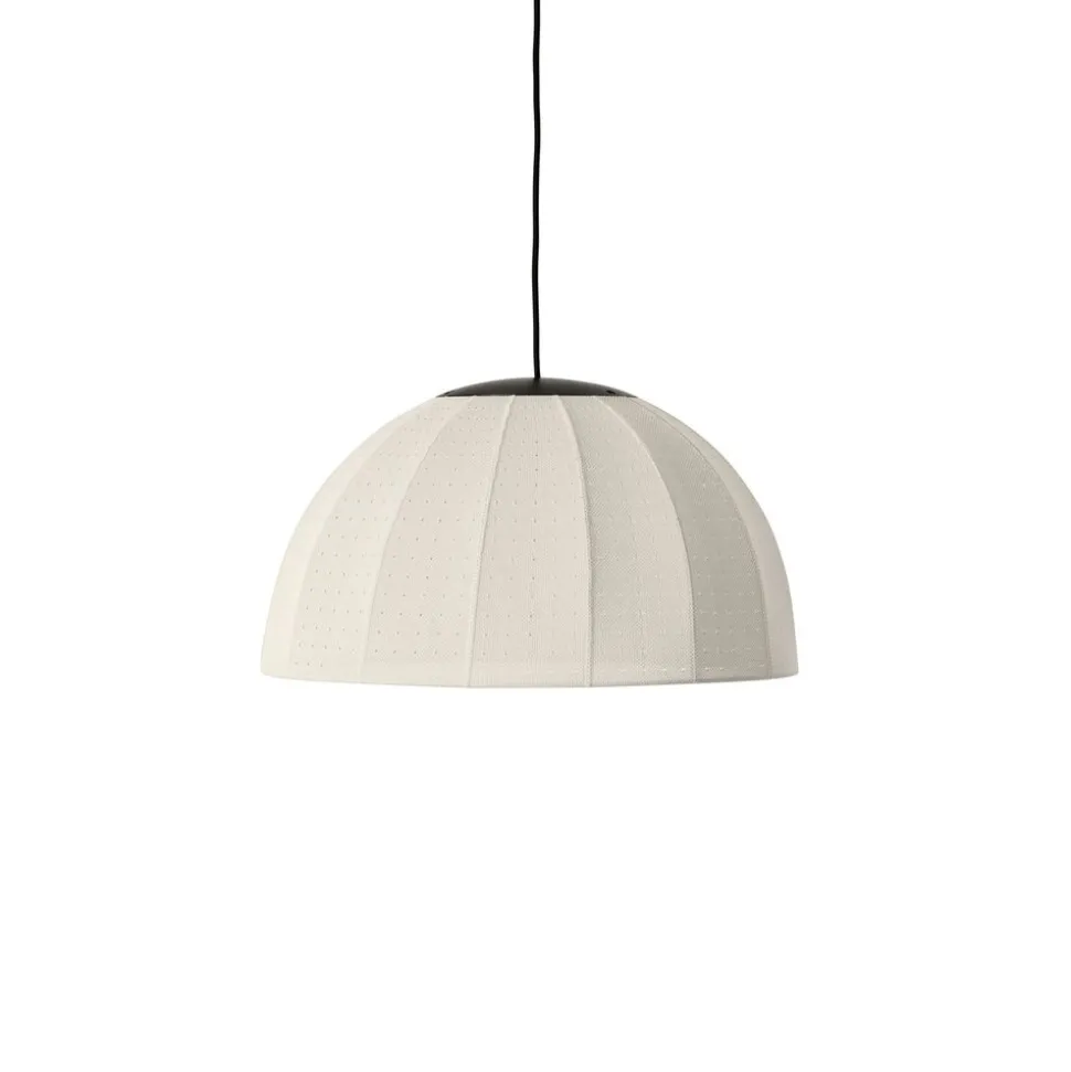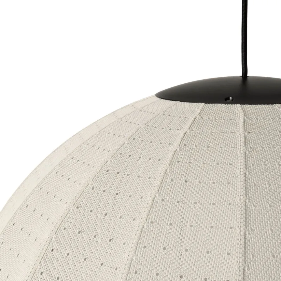 Mollis Ø50 von Made By Hand, entworfen von Aleksej Iskos, ist eine Pendelleuchte, die sich von traditionellen Lampen unterscheidet. Der gestrickte Lampenschirm wird über einen Metallrahmen gezogen, was der Leuchte einen einzigartigen und minimalistischen Look verleiht. Die leichte Konstruktion ist sowohl funktional als auch ästhetisch, und der Schirm lässt sich zum Waschen oder Austauschen leicht abnehmen. Die kombinierte Wirkung des nach unten gerichteten LED-Lichts und des weichen, diffusen Lichts schafft eine warme und einladende Atmosphäre im Raum, während die gestrickte Struktur den architektonischen Charakter der Lampe unterstreicht.