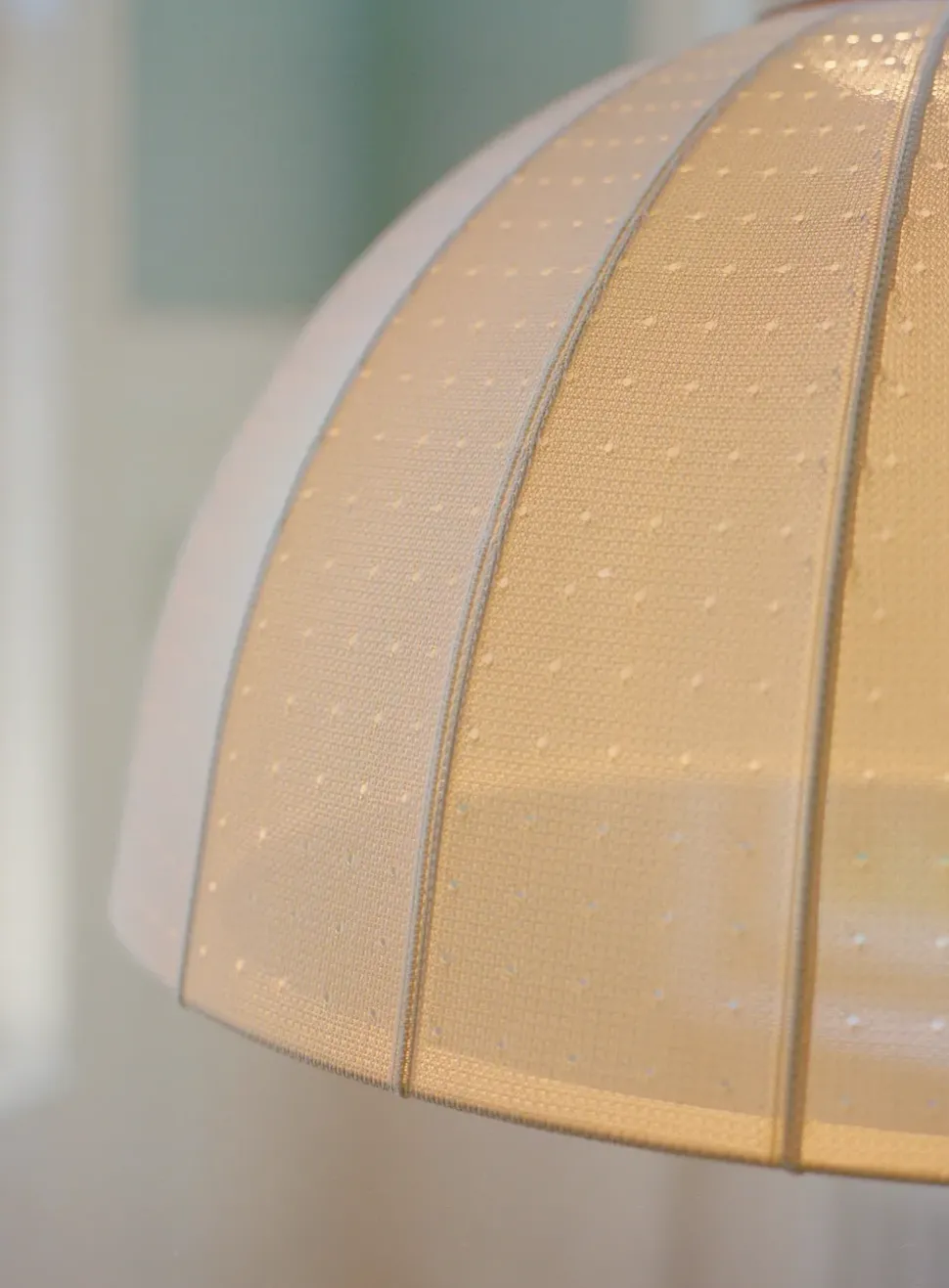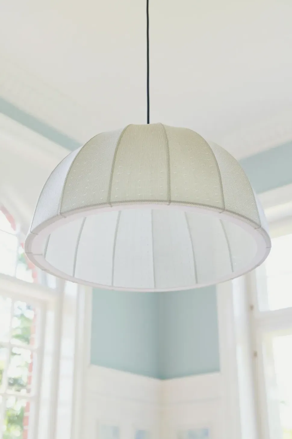 - Pflegehinweise: Wischen Sie die Lampenschirme regelmäßig mit einem weichen, trockenen Tuch oder einem Handstaubsauger mit Bürste ab, um Oberflächenstaub und Schmutz zu entfernen. Achten Sie darauf, dass das Gestrick nicht gezogen oder gedehnt wird. Für eine gründlichere Reinigung entfernen Sie Flecken oder Verschüttetes sofort mit einem feuchten Tuch oder Schwamm, der mit mildem Reinigungsmittel und Wasser angefeuchtet ist. Tupfen Sie die betroffene Stelle sanft ab und achten Sie darauf, nicht kräftig zu reiben oder zu schrubben, da dies die Maschenstruktur beschädigen kann.