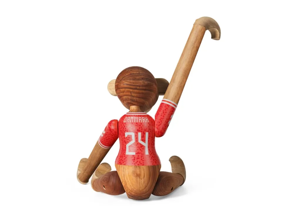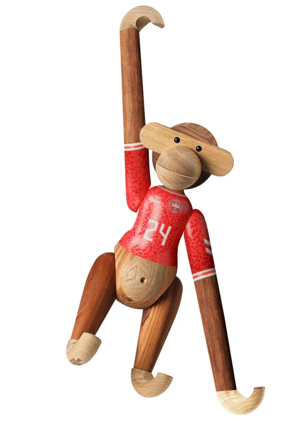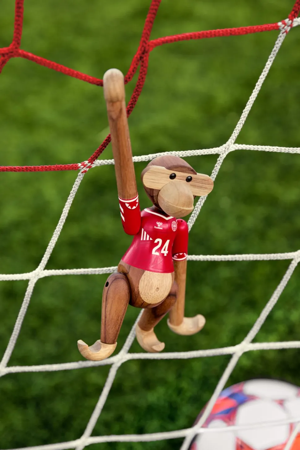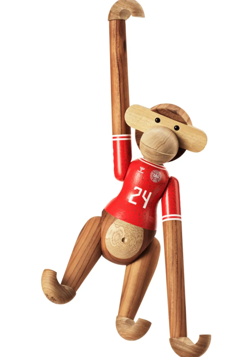 Kay Bojesen Monkey x DBU vereint zwei dänische Ikonen zu einer Hommage an Einheit und Stolz. Dieser mit Humor und exquisiter Handwerkskunst geschaffene Miniatur-Affe trägt das Trikot der Männer- oder Frauen-Nationalmannschaft und ist mit viel Liebe zum Detail bemalt. Die 9,5 cm große Figur aus FSC®-zertifiziertem Teakholz und kontrolliertem Brettschichtholz ist sowohl verantwortlich als auch elegant und passt mit ihrem einzigartigen Charme und ihrer dänischen Designtradition perfekt in jedes Zuhause.