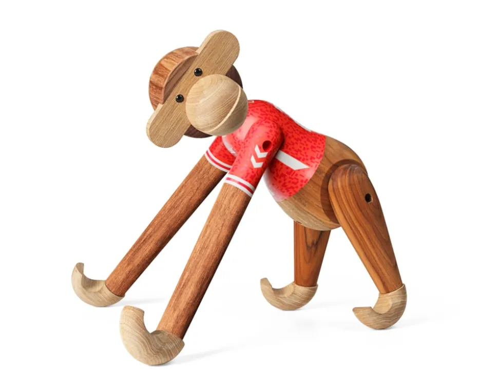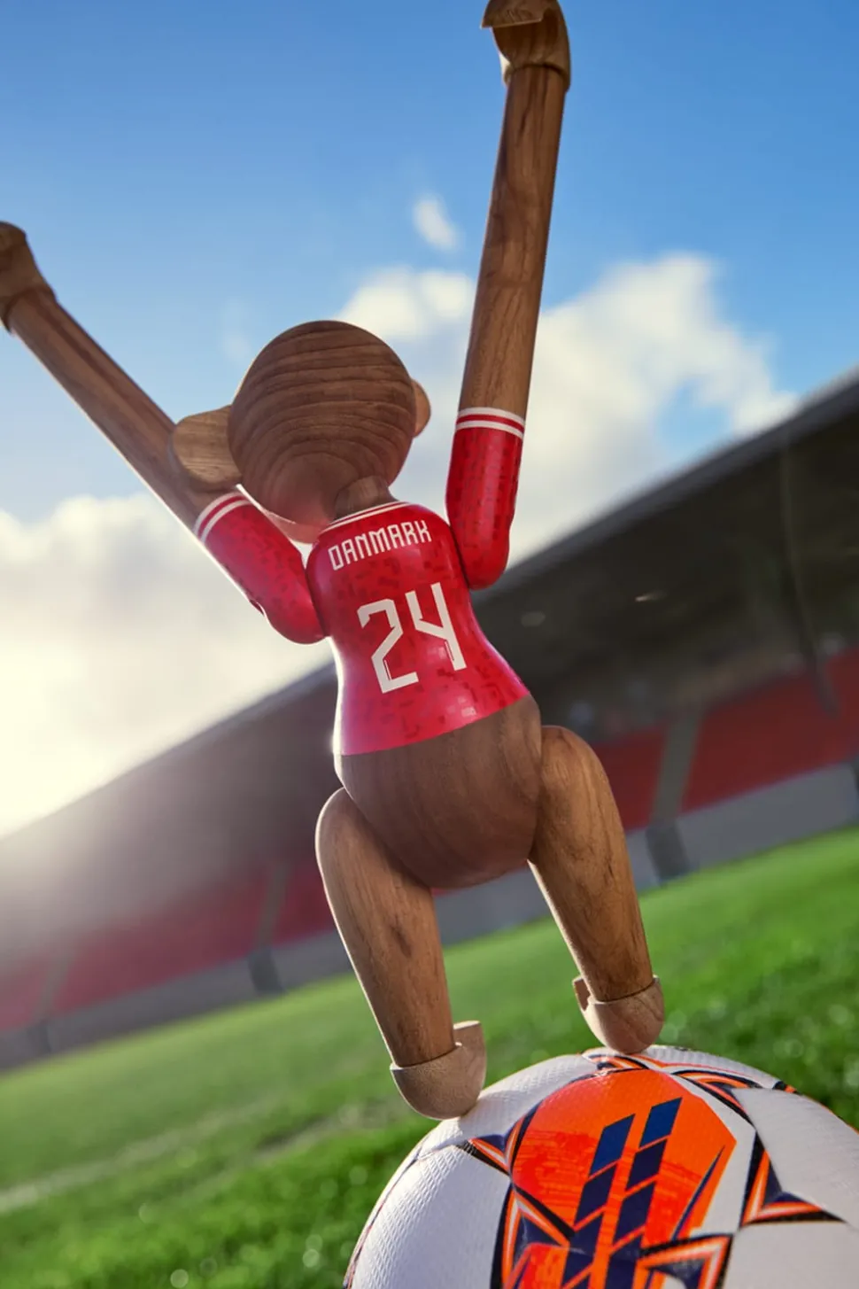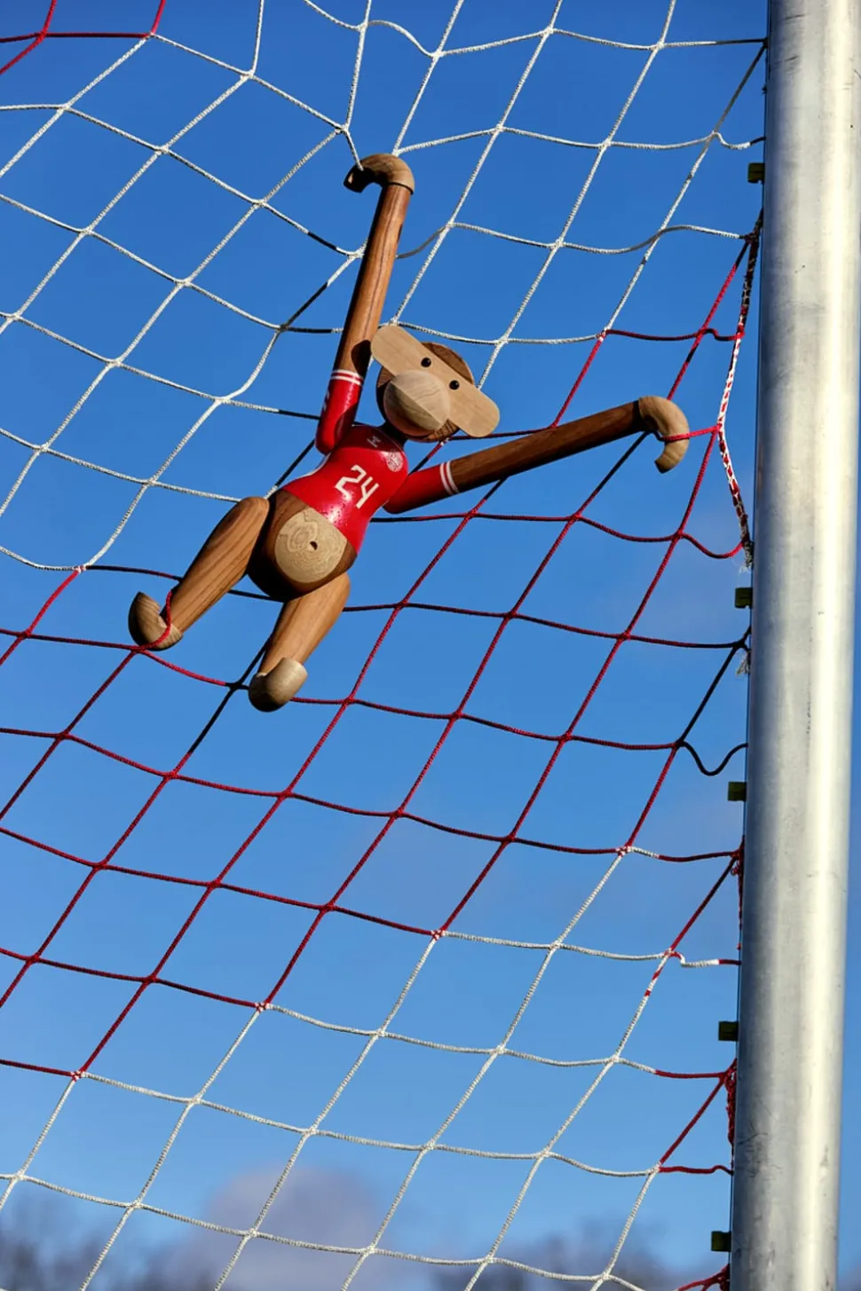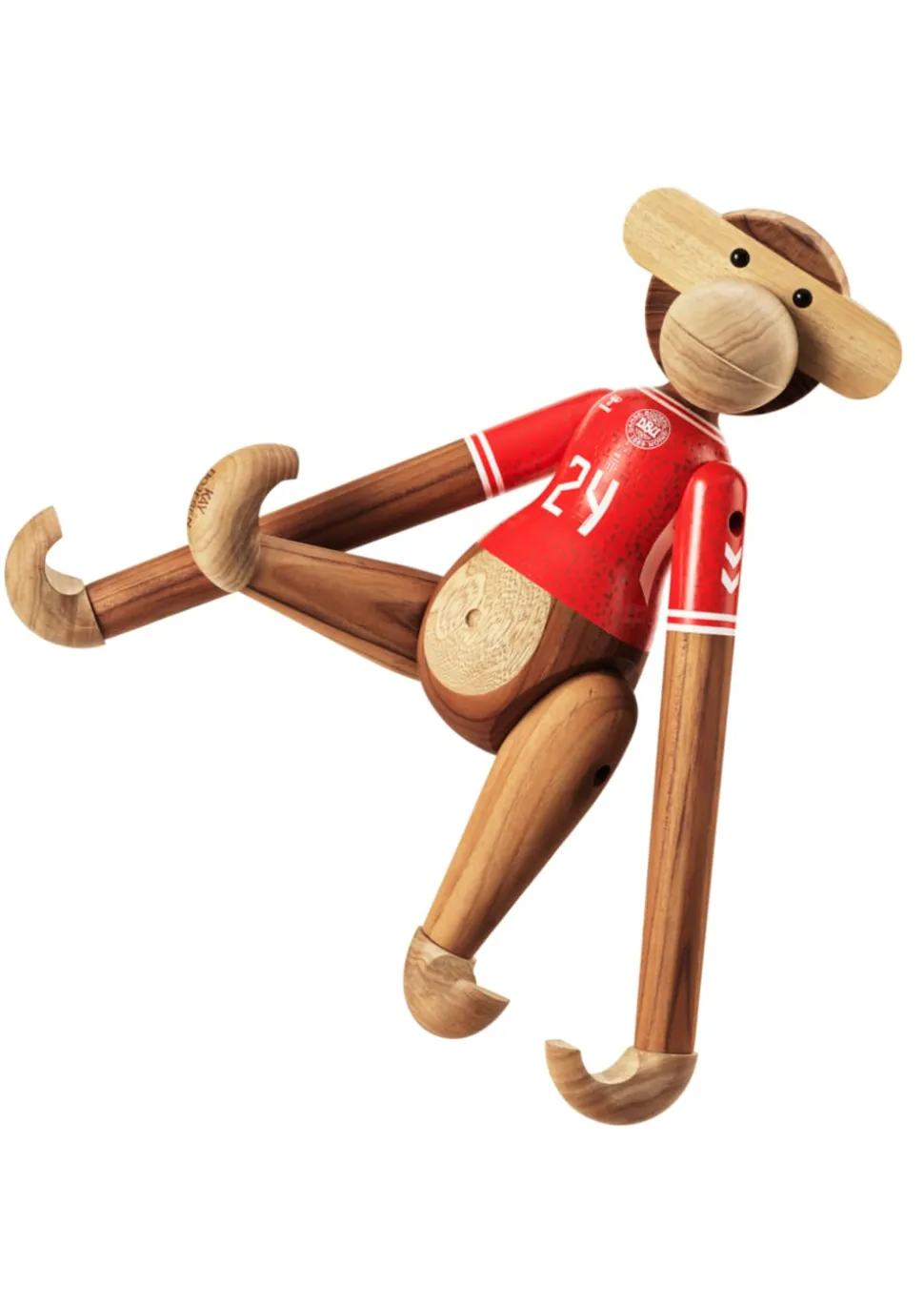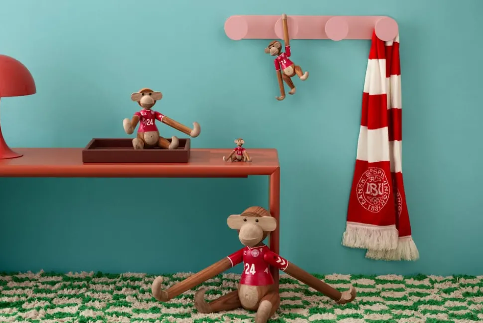 Kay Bojesen Monkey x DBU vereint zwei dänische Ikonen zu einer Hommage an Einheit und Stolz. Dieser mit Humor und exquisiter Handwerkskunst geschaffene Miniatur-Affe trägt das Trikot der Männer- oder Frauen-Nationalmannschaft und ist mit viel Liebe zum Detail bemalt. Die 9,5 cm große Figur aus FSC®-zertifiziertem Teakholz und kontrolliertem Brettschichtholz ist sowohl verantwortlich als auch elegant und passt mit ihrem einzigartigen Charme und ihrer dänischen Designtradition perfekt in jedes Zuhause.
