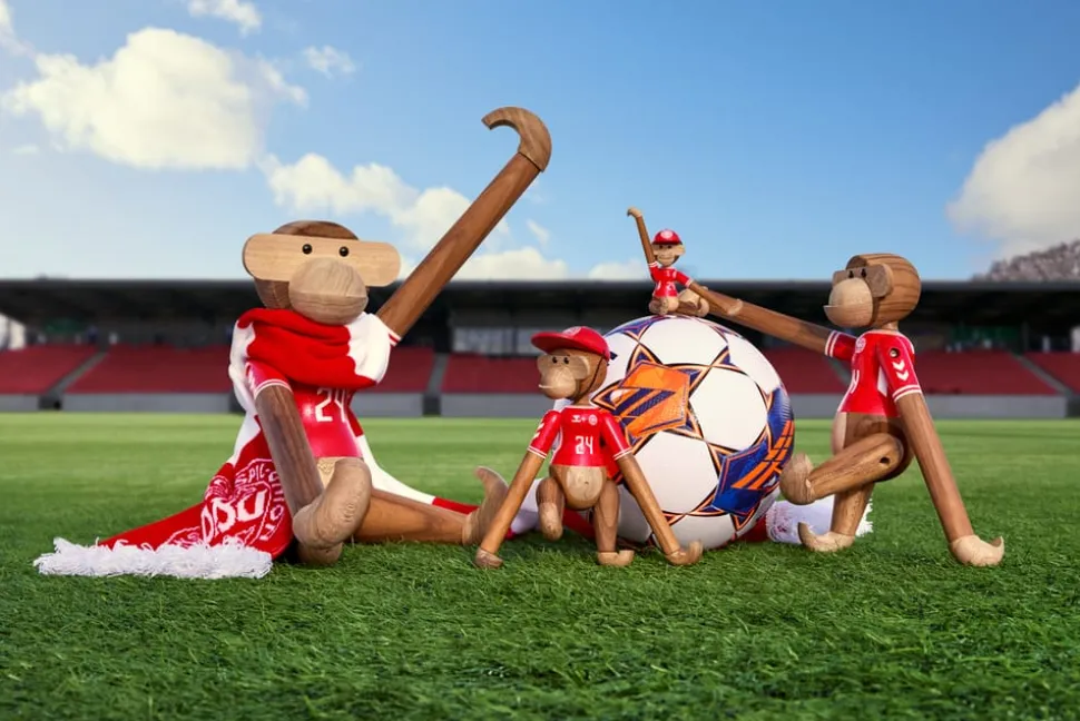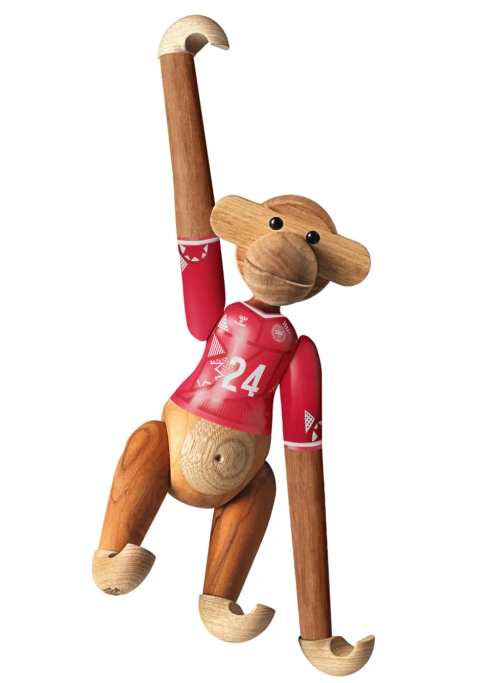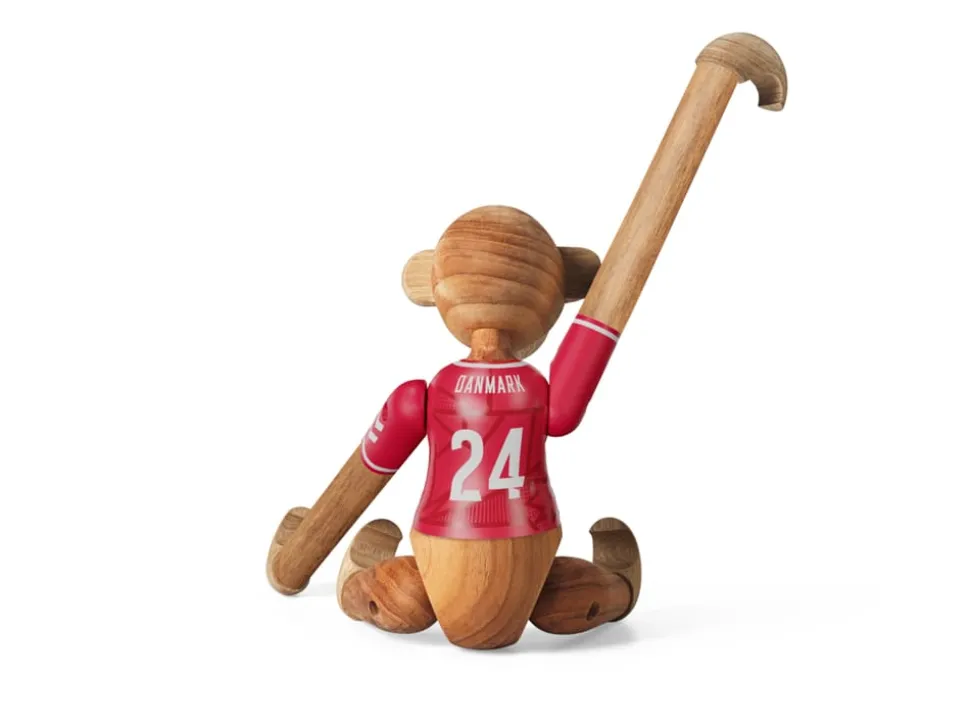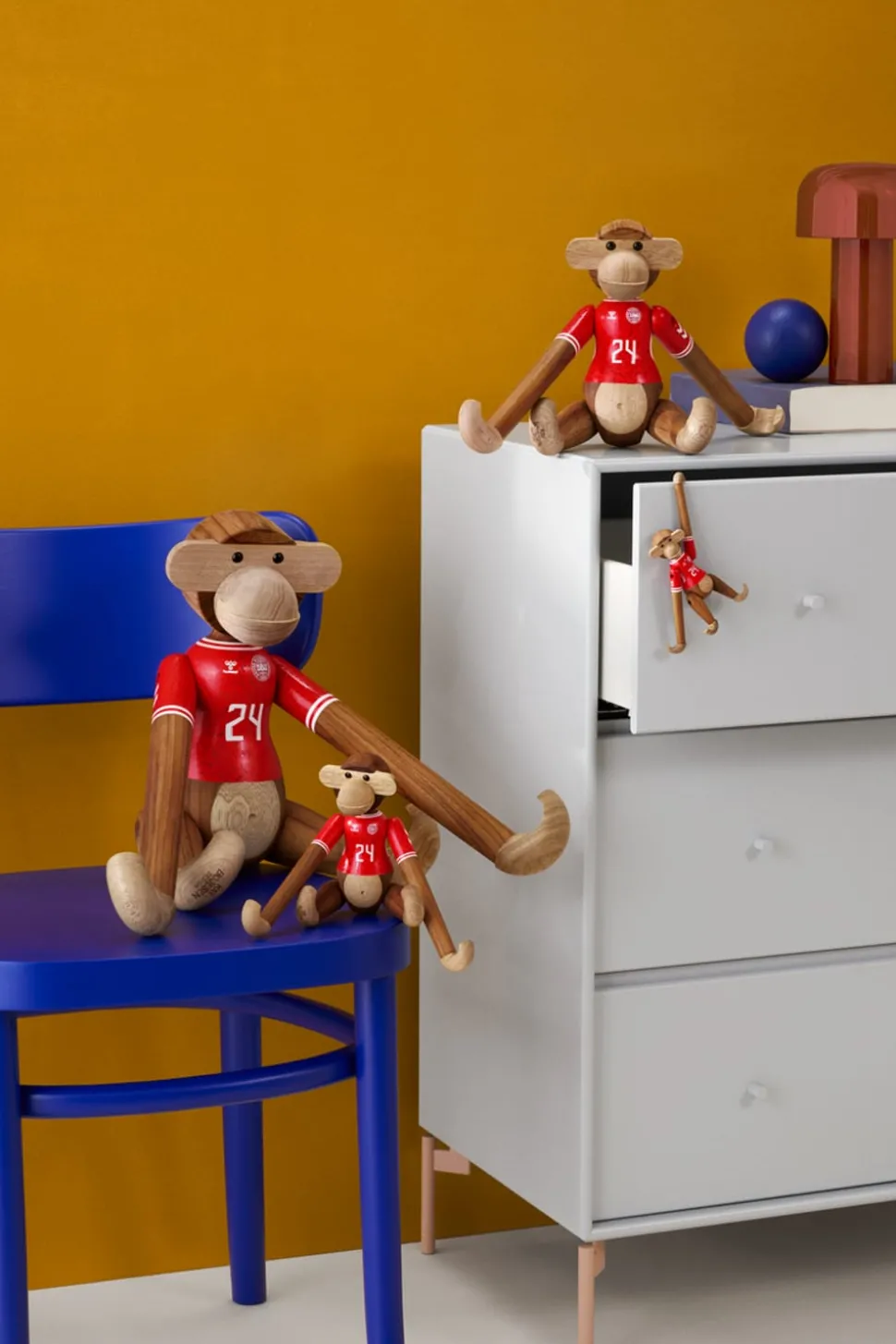 Kay Bojesen Monkey x DBU vereint zwei dänische Ikonen zu einer Hommage an Einheit und Stolz. Dieser mit Humor und exquisiter Handwerkskunst geschaffene Miniatur-Affe trägt das Trikot der Männer- oder Frauen-Nationalmannschaft und ist mit viel Liebe zum Detail bemalt. Die 9,5 cm große Figur aus FSC®-zertifiziertem Teakholz und kontrolliertem Brettschichtholz ist sowohl verantwortlich als auch elegant und passt mit ihrem einzigartigen Charme und ihrer dänischen Designtradition perfekt in jedes Zuhause.