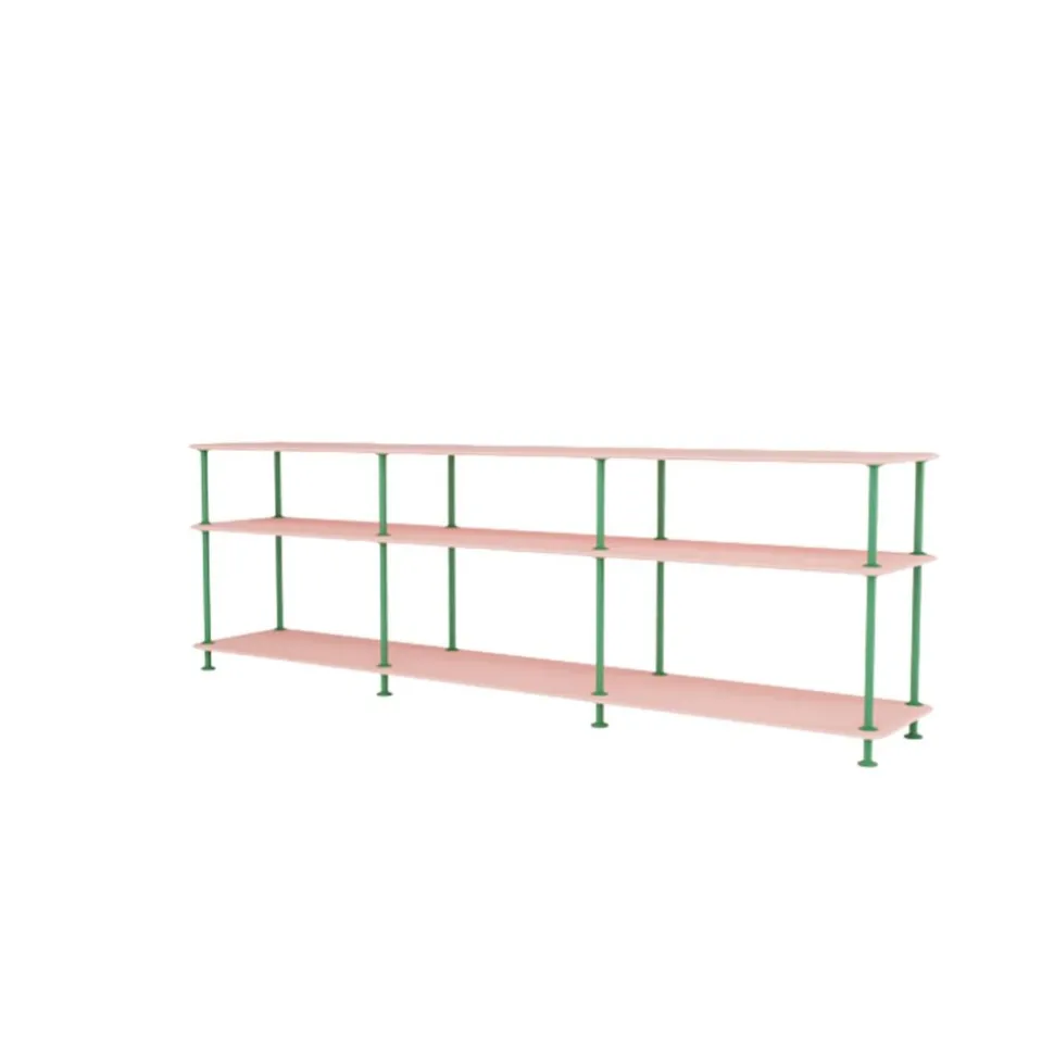 Free 111222 von , entworfen von Jakob Wagner, ist ein stilvolles und vielseitiges niedriges Bücherregal, das perfekt unter einen Fernseher oder als freistehender Raumteiler passt. Die leichte, minimalistische Konstruktion besteht aus lackierten 16 mm MDF-Böden, die elegant durch schlanke Metallsäulen verbunden sind. Die magnetische obere Ablage sorgt für einen stromlinienförmigen Look, während die offene Struktur für eine luftige und moderne Ästhetik sorgt. Mit seinem flexiblen Design ist das Regal ideal für die Aufbewahrung und Präsentation in jedem Interieur.