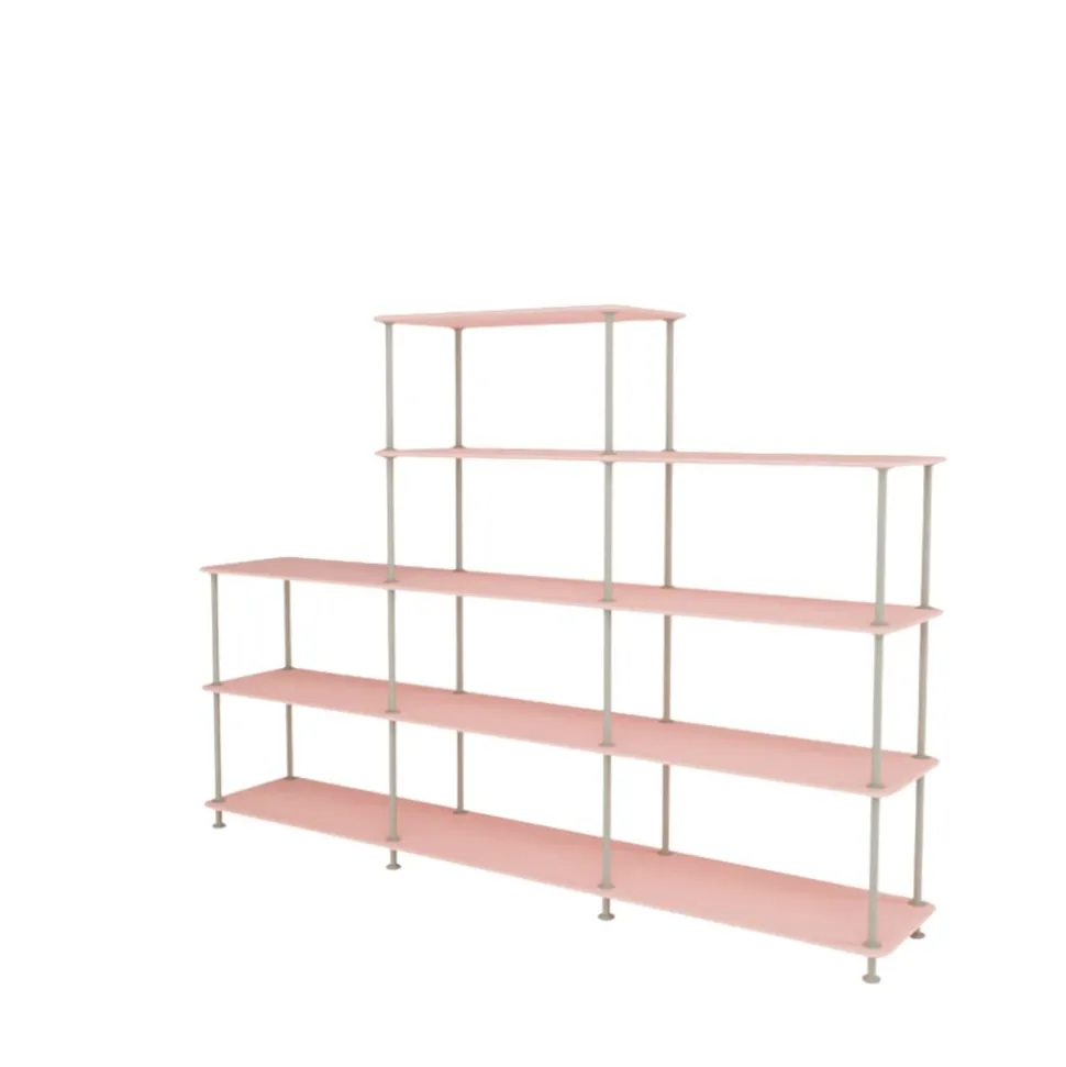 Das vielseitige Design macht es zum idealen Raumteiler oder zur Aufbewahrungslösung in Wohnzimmern, Büros oder Küchen. Es kann mit Büchern, Dekorationen oder in Kombination mit Montana-Stoffpaneelen gestaltet werden, um ihm eine persönliche Note zu verleihen. Mit den Paneelen, die in verschiedenen Texturen und Farben erhältlich sind, können Sie die Transparenz und den visuellen Ausdruck des Bücherregals anpassen.