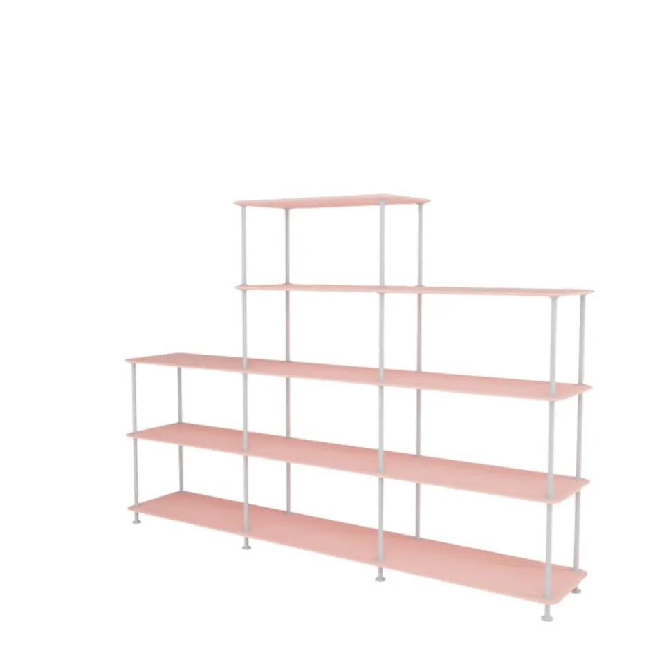 Free 342000 von , entworfen von Jakob Wagner, ist ein geräumiges, freistehendes Bücherregal mit drei Teilen in unterschiedlichen Höhen. Das skulpturale Design erzeugt einen dynamischen visuellen Effekt, während die schlanken Metallsäulen die lackierte MDF-Struktur tragen und für einen leichten und eleganten Look sorgen. Erhältlich in einer Reihe von zeitlosen Farben, lässt sich das Regal in jede moderne Wohnung integrieren, sei es als Stauraum oder als Raumtrenner.