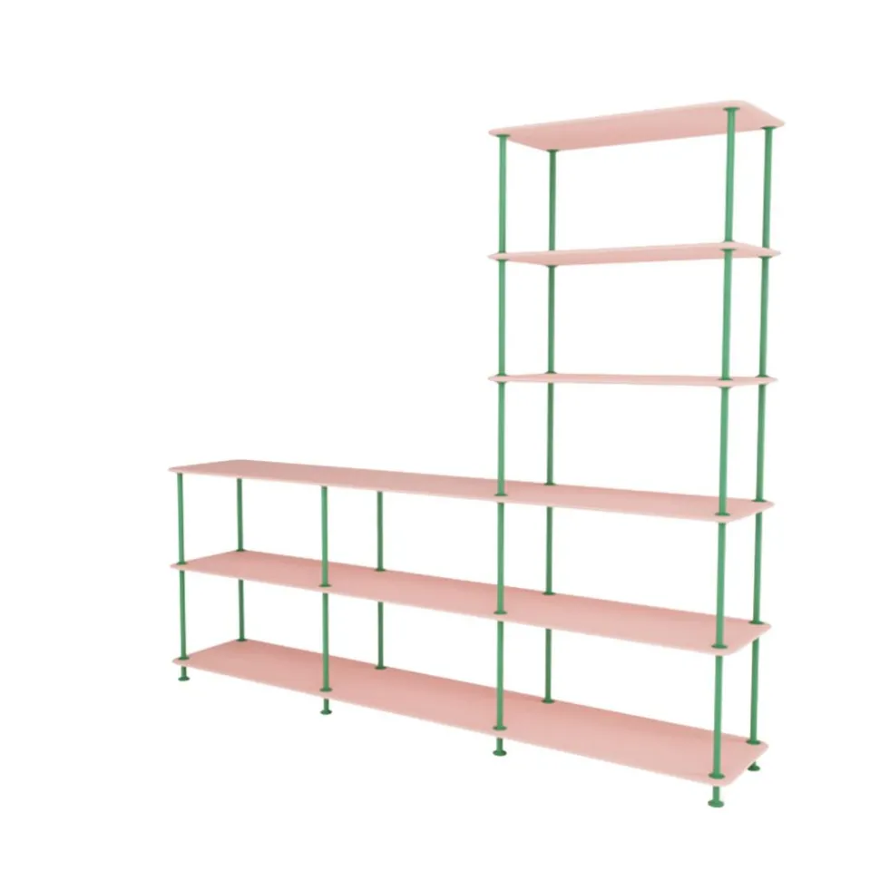 Free 522000 von , entworfen von Jakob Wagner, ist ein dynamisches und elegantes Regal, das Funktionalität mit Ästhetik verbindet. Mit seiner asymmetrischen Silhouette schafft das Regal eine natürliche Bewegung im Raum und fungiert sowohl als Raumteiler als auch als stilvolles Aufbewahrungsstück. Es besteht aus 16 mm lackiertem MDF und wird von robusten Metallzylindern getragen, die für eine leichte, aber solide Konstruktion sorgen. Die raffinierte Farbe Parsley verleiht dem Regal einen ruhigen und modernen Look, der zu jeder Einrichtung passt.