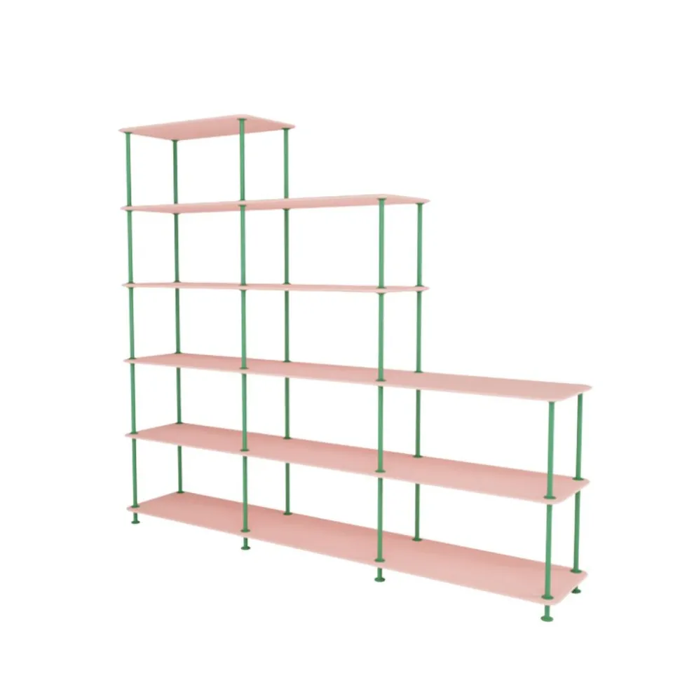 Free 542000 von , entworfen von Jakob Wagner, ist ein elegantes und geräumiges Bücherregal, das sich perfekt für größere Räume eignet, die eine flexible Aufbewahrung benötigen. Mit seinem asymmetrischen Design und den drei Fächern auf verschiedenen Höhen schafft es eine dynamische und moderne Organisation Ihrer Sachen. Die Konstruktion besteht aus 16 mm starkem, lackiertem MDF, das von schlanken Metallsäulen getragen wird, die für einen leichten und luftigen Look sorgen. Das Regal ist in verschiedenen Farben erhältlich, unter anderem in der eleganten Farbe Parsley, und lässt sich problemlos in jede Einrichtung integrieren.