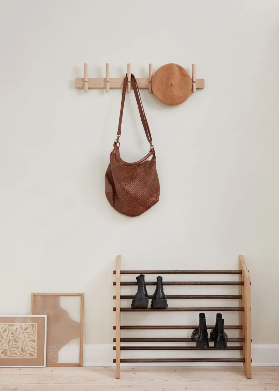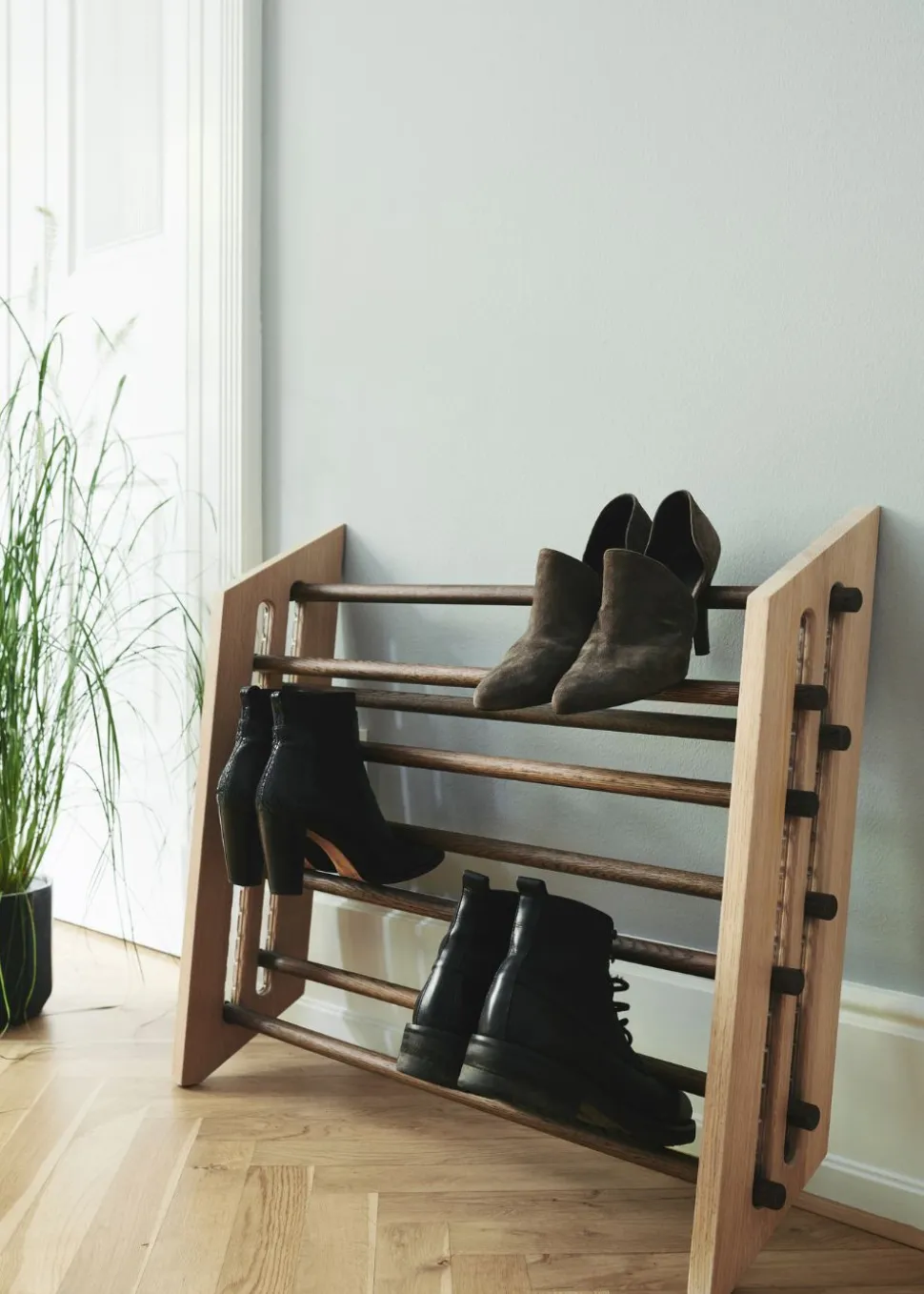 Der Moodstand von ist ein Schuhregal, das sowohl Funktionalität als auch Ästhetik vereint. Es wurde entwickelt, um Ihre Schuhe auf praktische und stilvolle Weise aufzubewahren. Das Schuhregal ist aus klassischem Eichenholz gefertigt und verleiht jeder Inneneinrichtung einen Hauch von natürlicher Schönheit.