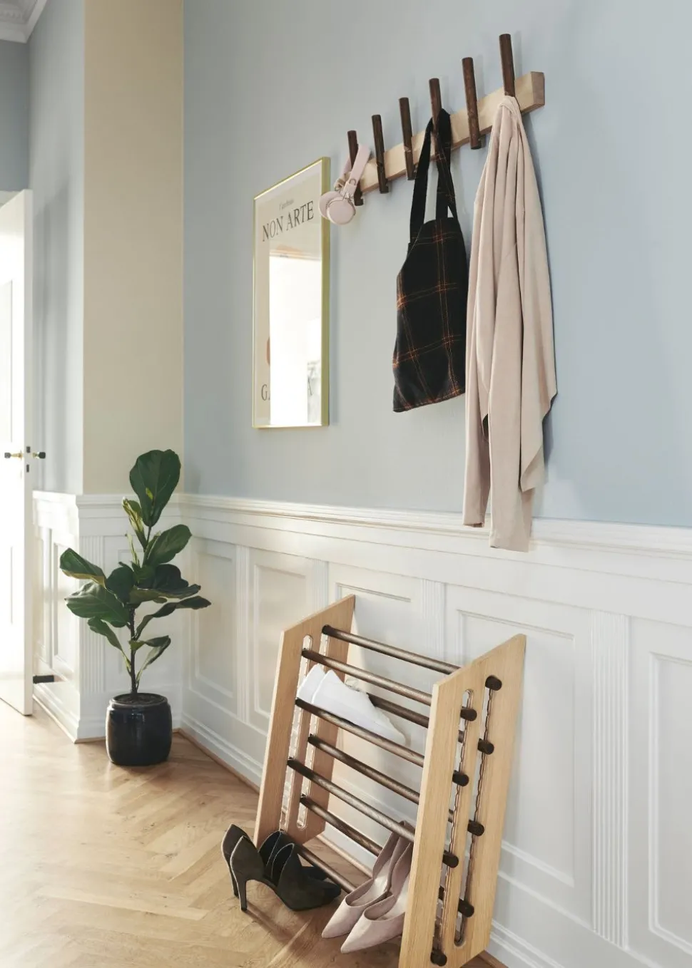 Mit seinem schlichten und modernen Design ist das Schuhregal ein ästhetischer Blickfang. Die natürliche Maserung des Eichenholzes bildet einen Kontrast und verleiht ihm ein anspruchsvolles und zeitloses Design.