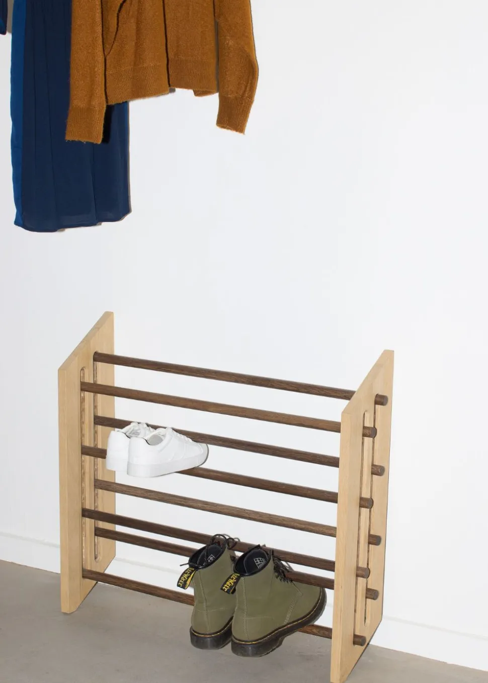 - Material: Das Schuhregal ist aus massiver europäischer Eiche gefertigt.