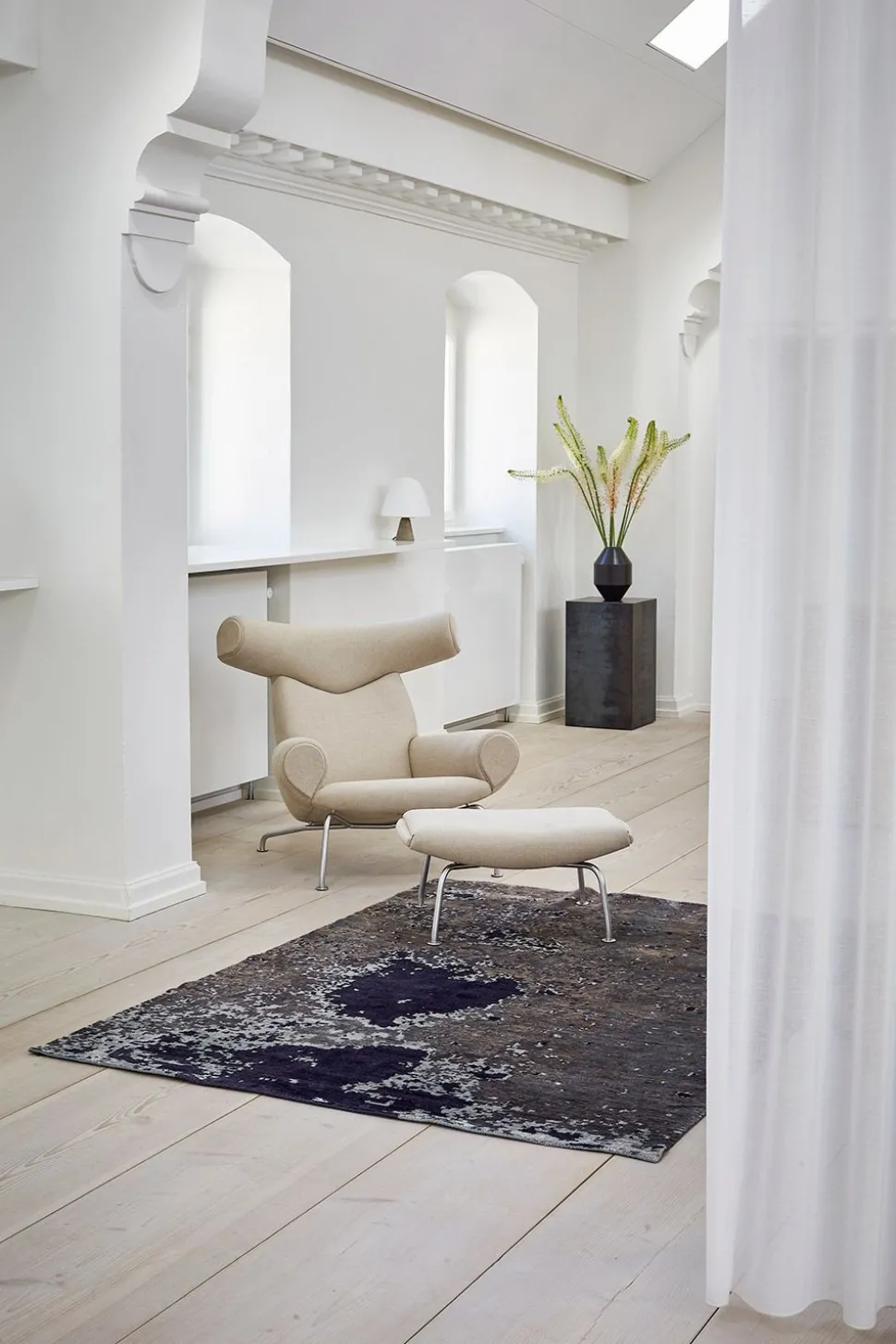 Moon Night ist ein hochwertiger, handgeknüpfter Teppich aus 100% Bambusfaser, der durch die einzigartige Weichheit und glänzende Oberfläche ein luxuriöses Gefühl vermittelt. Bambusfasern bestehen aus einer Bambuspaste und zeichnen sich durch eine hohe Haltbarkeit, Stabilität und Festigkeit aus. Die Qualität der Fasern minimiert das Ablösen von fast nichts.