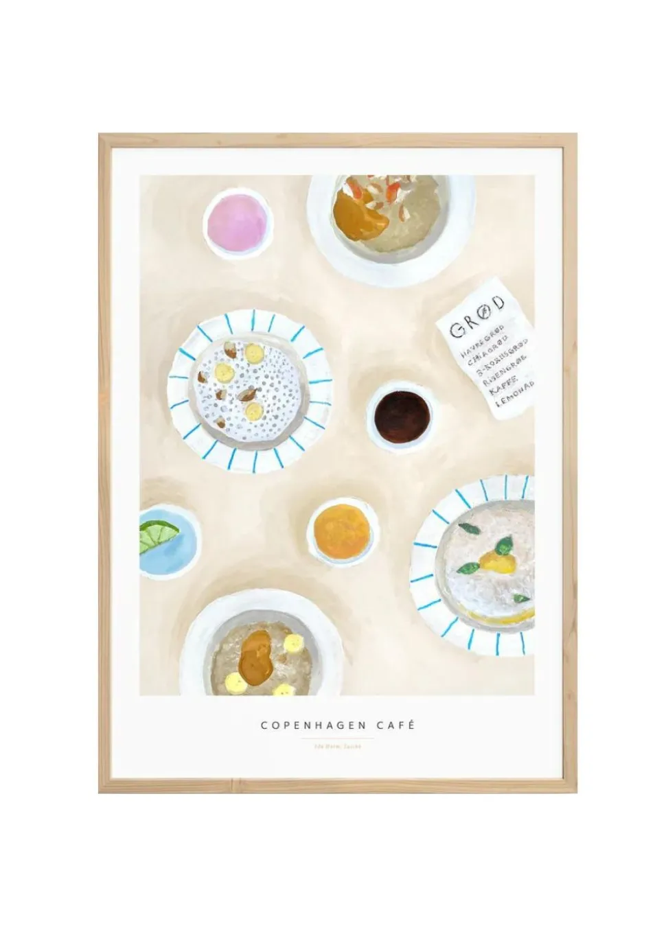 Das immer leckere Frühstück im Café GRØD besteht aus Haferflocken, Smotthiebals und Chia-Creme. Ihr breites Angebot an schönen und schmackhaften Frühstücksgerichten ist in Dänemark ein Hit. Das Poster „Morning table at GRØD“ von illustriert den köstlichen GRØD-Tisch perfekt. Es ist ein lustiges und schönes Plakat, bei dem man die weichen Pinselstriche sehen und die Atmosphäre spüren kann.