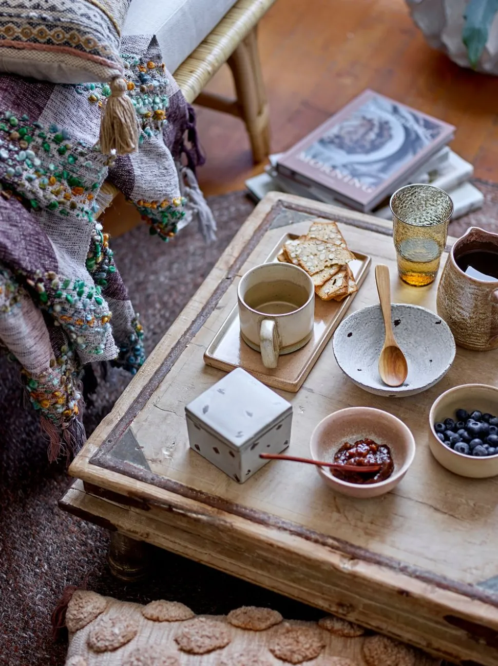 Diese schöne Moshi-Schale aus weißem Steingut mit den feinsten Details aus der Creative-Kollektion. Das rustikale und harmonische Aussehen der Schale und ihre abgerundeten Kanten können sowohl zum Servieren als auch als schöne Dekoration verwendet werden.