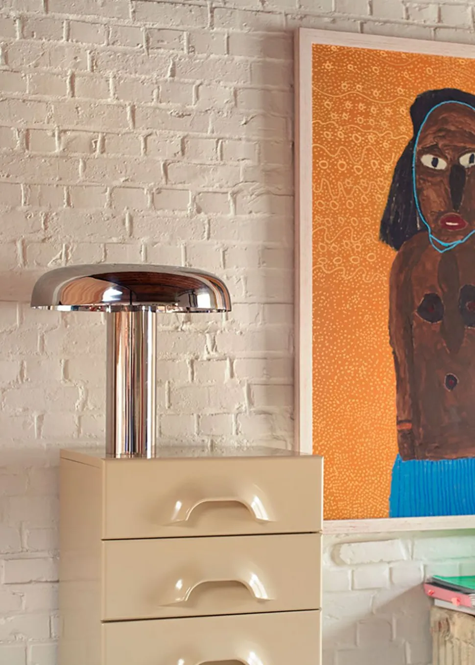 Die Mushroom Tischleuchte von HK Living ist eine stilvolle und elegante Tischleuchte. Die Tischleuchte ist vom Weltraum inspiriert und fügt sich mit ihrer Chromfarbe perfekt in die moderne Innenarchitektur ein.