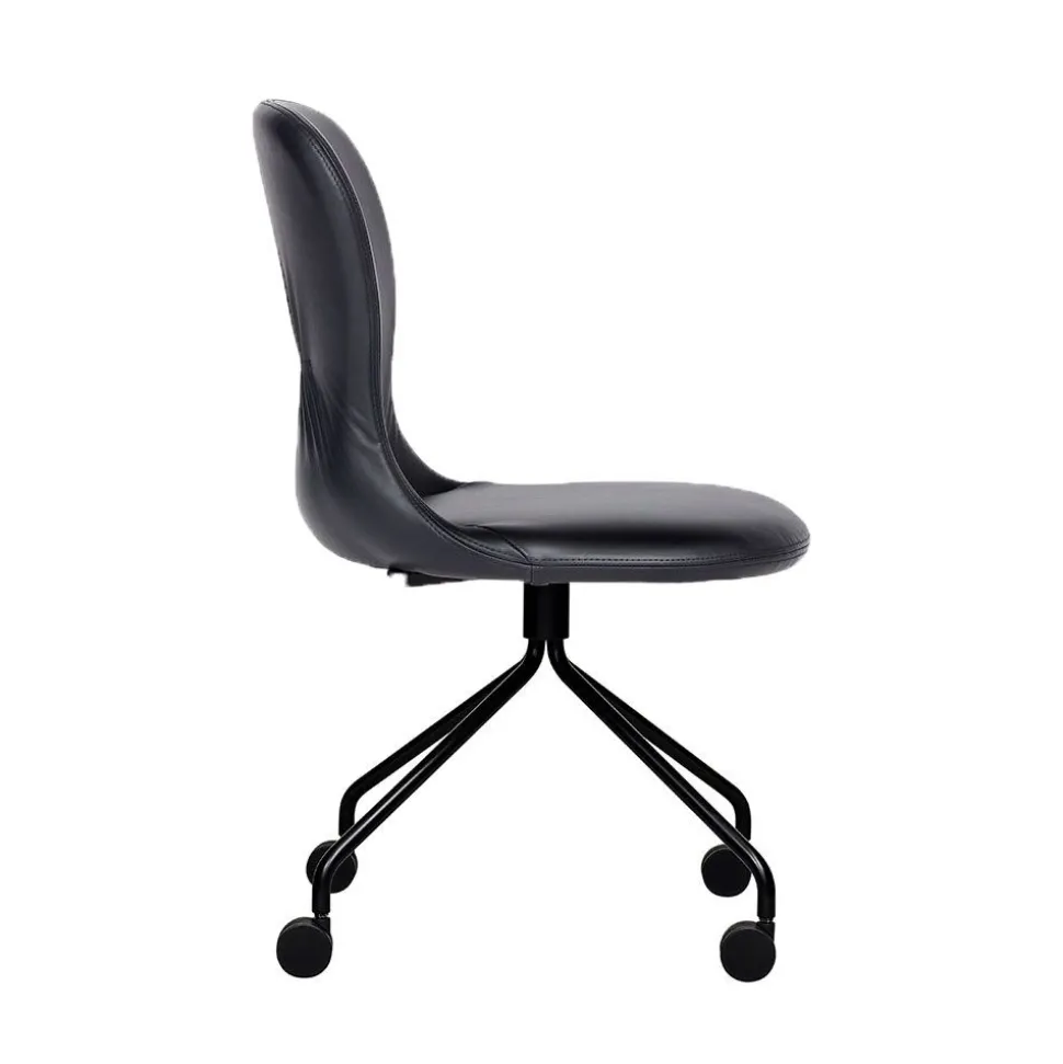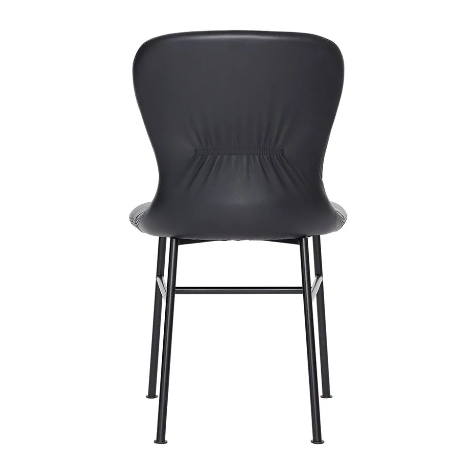 Der Esszimmerstuhl Myko“ ist ein schönes Beispiel für Stefan Borselius‘ Fähigkeiten als Möbelarchitekt und sein einzigartiges Gespür für das Potenzial von Materialien. Beim Myko-Stuhl hat er sich von der Flexibilität von Textilien inspirieren lassen, was zu einer schönen Polsterung mit einem faltigen Rückendetail geführt hat. Die Sitzfläche ruht auf einem eleganten Metallgestell, das die Optik des Stuhls ausgleicht, der sich problemlos in ein Esszimmer oder ein Büro einfügen lässt.