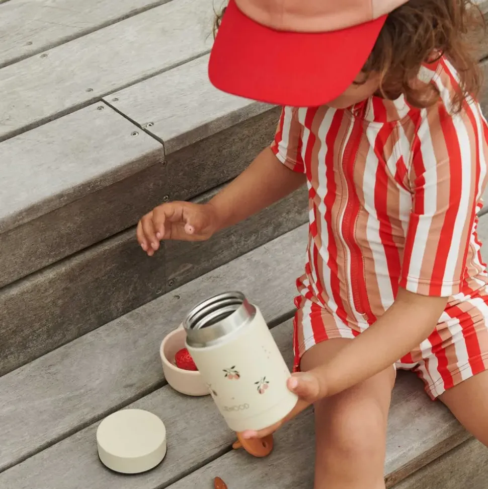 Dieser edle Stahlbehälter von Liewood ist für heiße und kalte Speisen und Getränke geeignet. Er ist mit einer doppelten Edelstahlbeschichtung versehen und eignet sich daher ideal für den Transport von z. B. Brei oder Snacks für unterwegs.