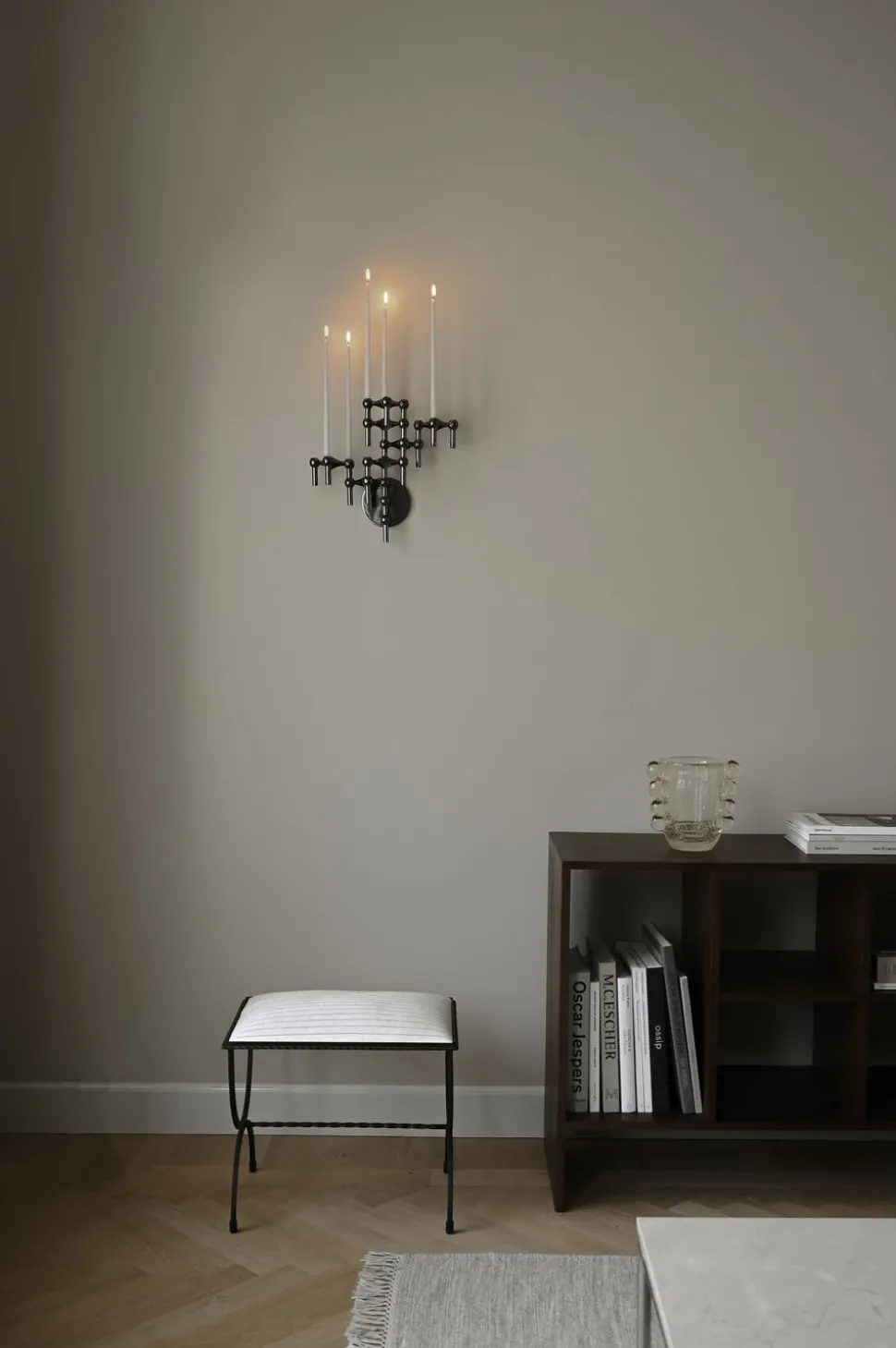 Neuer schöner Wandbehang von Nagel. Der Wandbehang wurde entworfen, um die visuellen Möglichkeiten mit dem Nagel Kerzenhalter zu erweitern. Der Wandbehang ist dezent und unaufdringlich und ermutigt Sie dazu, Ihre Nagel-Kollektion auf individuelle Weise zu präsentieren.