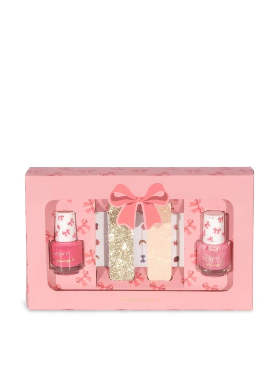 - Specifikationer: Indeholder 2 neglelak, 2 neglefile og negleklistermærker.
