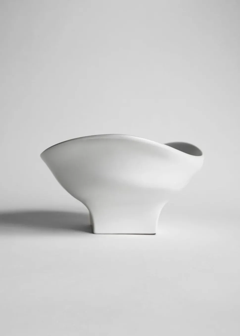 Die Schale Nami von , entworfen von Rebecca Hein, ist ein wunderbares Beispiel dafür, wie Handwerk auf Kunst trifft. Inspiriert von der traditionellen japanischen Keramikkunst zelebriert diese Kollektion die Schönheit der Einfachheit und integriert Wabi-Sabi-Elemente, um in jedem Raum eine ruhige Atmosphäre zu schaffen. Die asymmetrische Form, die die fließende Natur der Wellen widerspiegelt, verändert die Perspektive in jedem Winkel und macht jeden Blick einzigartig und fesselnd. Die Oberfläche ist mit einer beruhigenden weißen Glasur überzogen, die jedem Raum Leichtigkeit und Reinheit verleiht. Da alle Stücke in Portugal handgefertigt und glasiert werden, ist jede Schale ein Unikat mit leichten Abweichungen, die von der außergewöhnlichen Handwerkskunst zeugen.