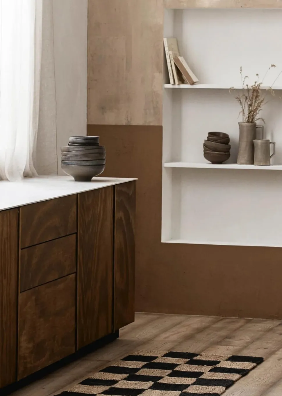 NANEA tæppet fra er en sand skønhed, der forener tidløs elegance med rustik charme. Dette jutetæppe, vævet i en fortryllende blanding af sort og naturfarver, skaber en visuel fest for øjet. Det skakternede mønster giver tæppet en klassisk, men alligevel moderne appel, der nemt kan integreres i forskellige indretningsstile. Fremstillet af høj kvalitetsmaterialer, sikrer NANEA tæppet ikke kun holdbarhed, men også en naturlig tekstur, der tilføjer et lag af sofistikation til ethvert rum.