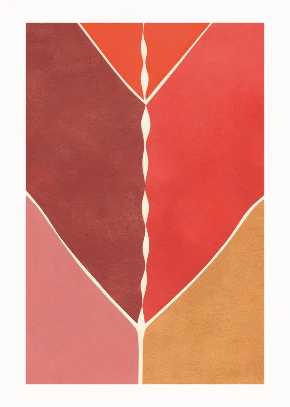 Die Navigation wurde von dem dänischen Künstler Doyoumindart entworfen. Die schönen und unterschiedlichen Farben sind Rosa, Rot und Senf. Das Bild sollte wie ein Blattkamm oder eine Reihe von miteinander verbundenen Straßen aussehen. Das Bild ist mit einigen schönen Sommerfarben, die in jedes Haus passen und eine Wand viel schöner aussehen lassen. Sie können viele andere tolle Poster mit diesem einzigartigen Bild mischen und Ihre ganz persönliche Bilderwand gestalten.