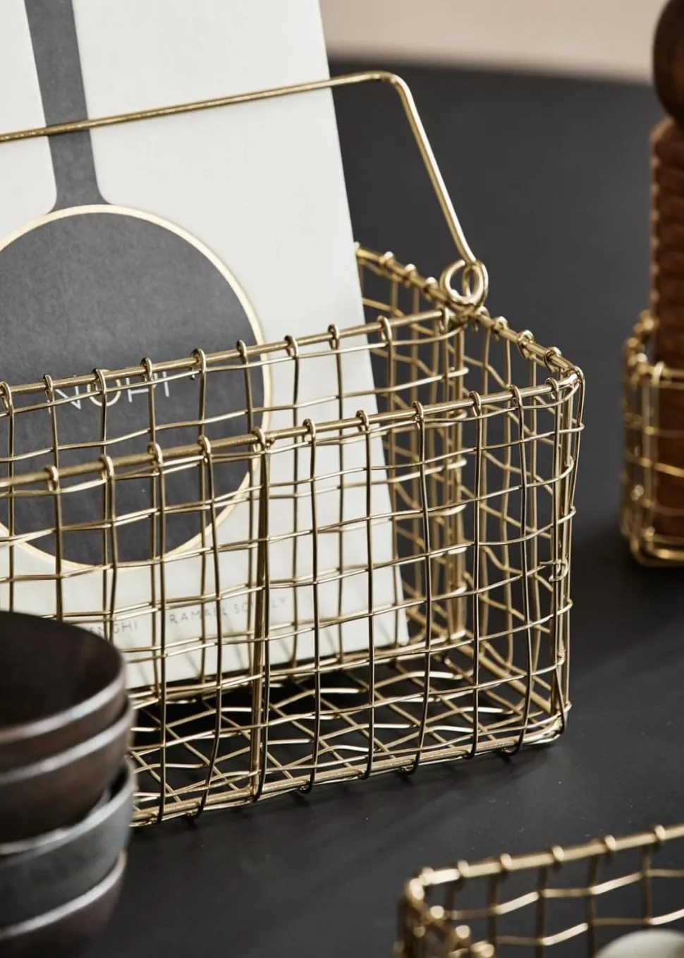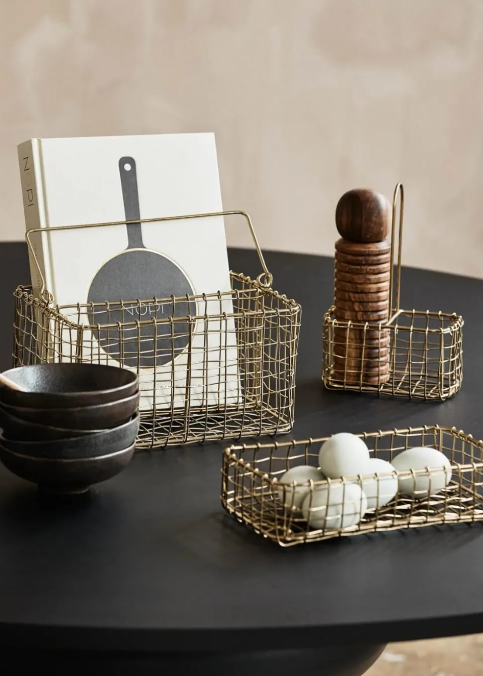 NAVITI trådkurven fra er ideel til at organisere og udstille dagligdagens småting på en sofistikeret måde. Forestil dig kurven fyldt med elegante krydderikværne, klar til at blive flyttet til spisebordet, hvor de tilfører et dekorativt og indbydende touch til borddækningen. Den passer harmonisk ind i et hvert interiør, fra det minimalistiske til det mere boheme-inspirerede hjem, og tilbyder en smart løsning til at holde orden på en smuk og stilfuld måde