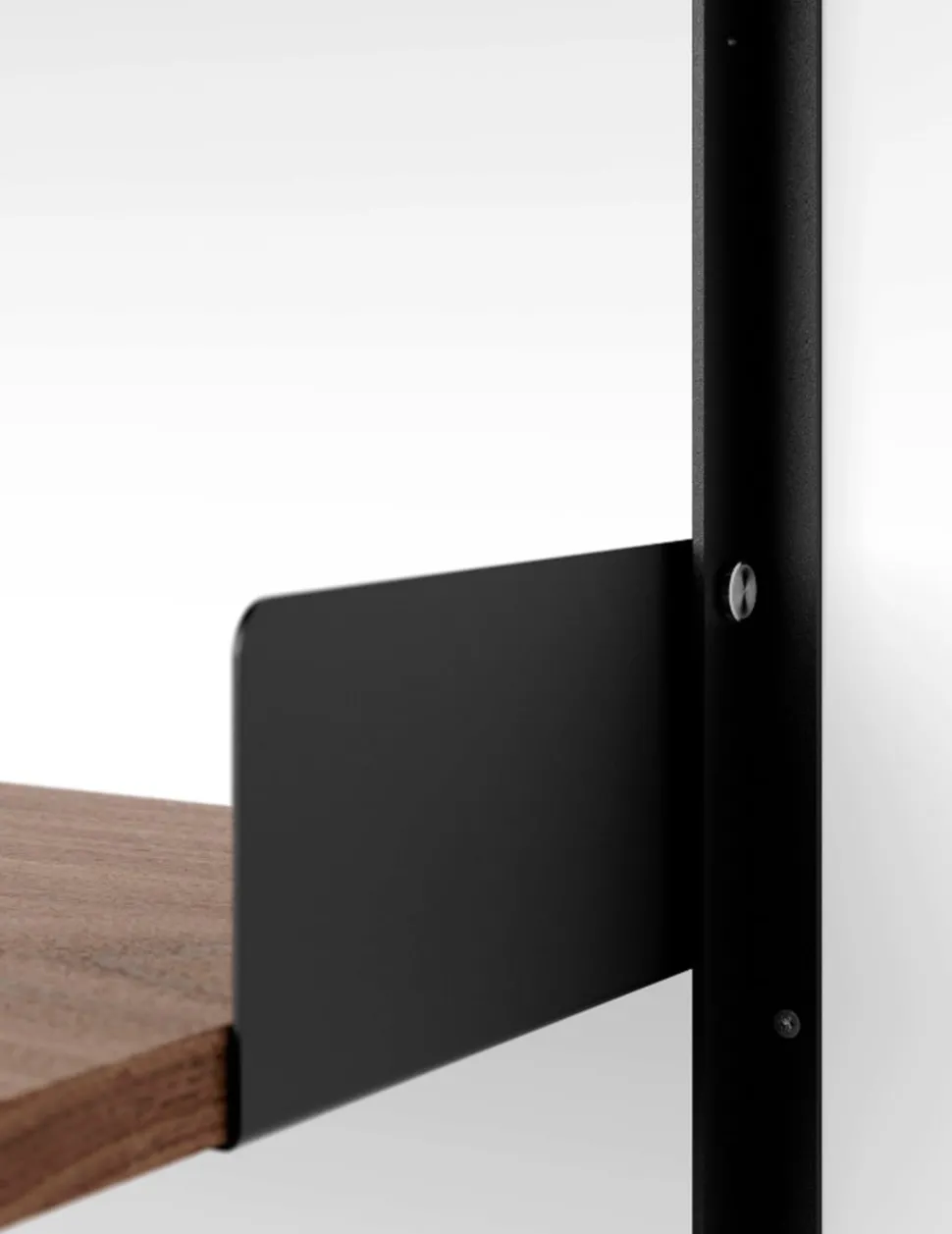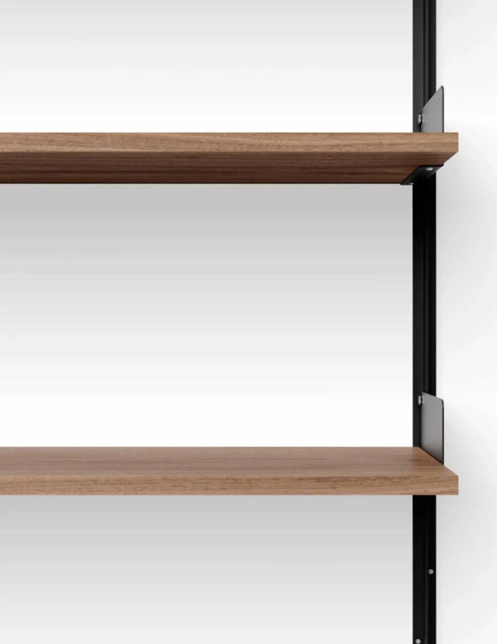 - Material: Der Regalrahmen ist aus rostfreiem Stahl gefertigt. Bei den Regalböden können Sie zwischen Eiche, Esche schwarz, Nussbaum und weiß lackiertem MDF wählen.
