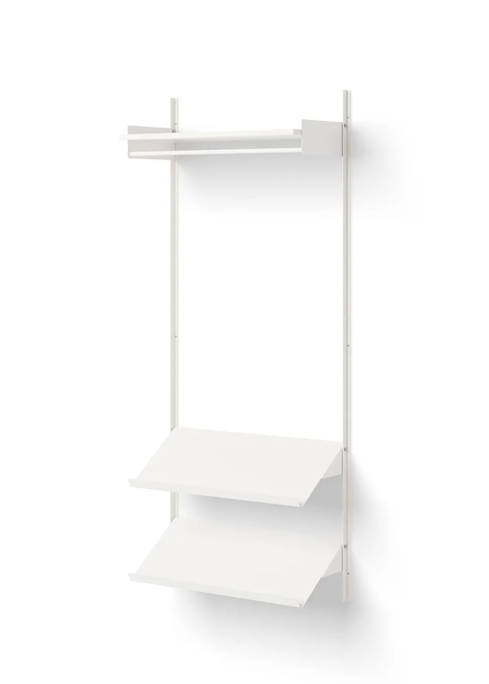 - Bestandteile: 1 x NW Wandstange, 1900 (2er-Set), 1 x NW Tiefes Regal, 1 x NW Bodenträger und Stange für Garderobe & 2 x NW Schrägboden.