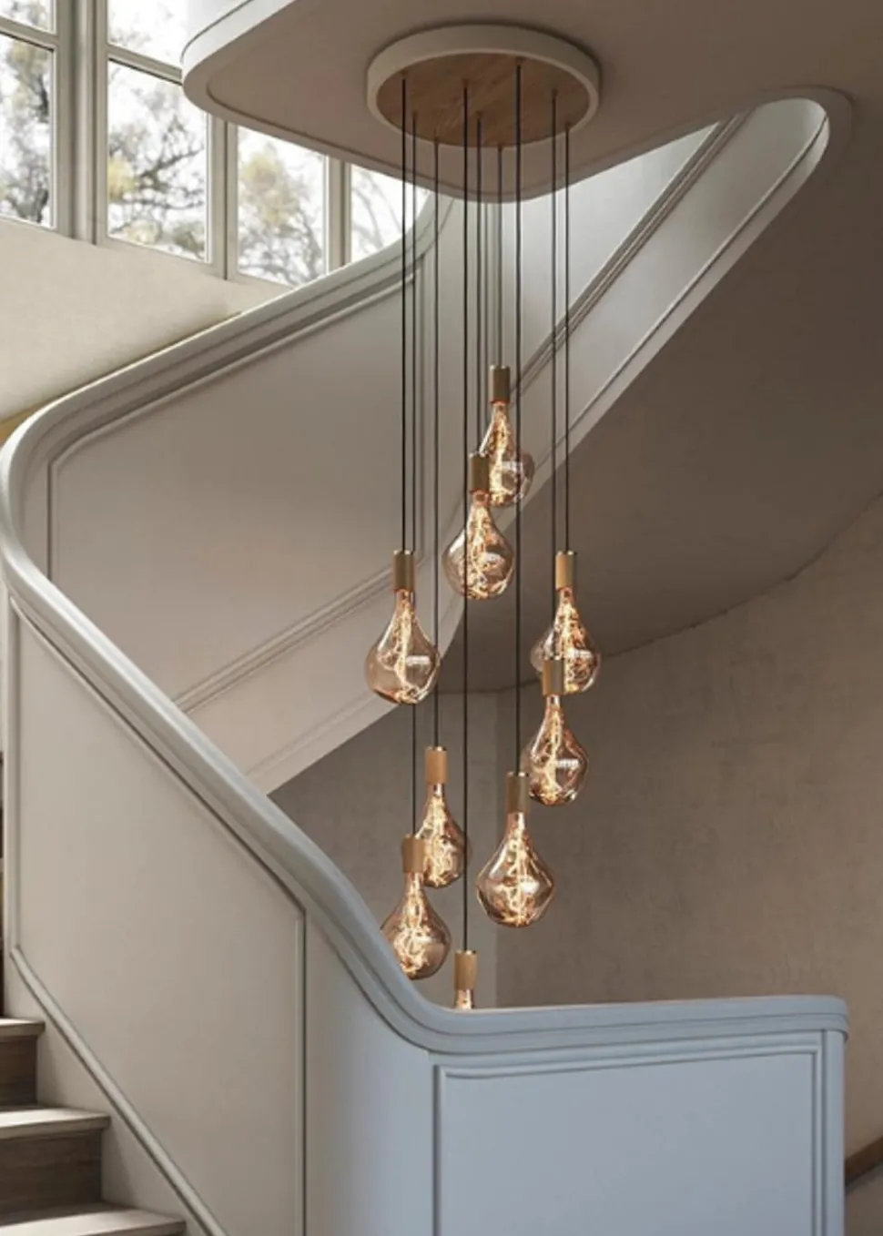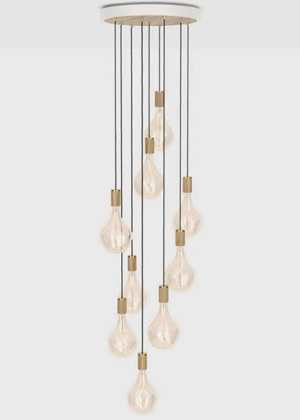 Schöne Deckenlampen in verschiedenen Stoffen. Dekorieren Sie Ihr Zuhause mit einer dieser Lampen und schaffen Sie einen schönen und modernen Raum, indem Sie diese Lampen verwenden. Die Lampen sind mit einem weißen oder schwarzen Deckenbaldachin erhältlich, bei dem Sie die Art des Griffs wählen können. Die Leuchte verfügt über neun Pendel, die garantiert viel Licht in den Raum bringen, und ist daher auch eine einzigartige Leuchte mit einem 5 Meter langen schwarzen Kabel. Dies ist perfekt für diejenigen, die eine große Eingangshalle mit hohen Decken haben, wo diese Lampe perfekt passt. Der Clou an der Lampe ist, dass man jedes Kabel so einstellen kann, wie man es möchte. Das bedeutet, dass Sie selbst bestimmen können, wie die Lampe aussehen soll. Die Griffe passen zu allen dekorativen E27-Glühbirnen und ermöglichen es, einzelne Lampen zu kombinieren. Sie können sich entweder für eine schlichte Lampe entscheiden und überall die gleiche Lampe verwenden oder Sie können etwas gewagter sein und viele verschiedene Lampen verwenden. Jede hat ihren eigenen Charme.